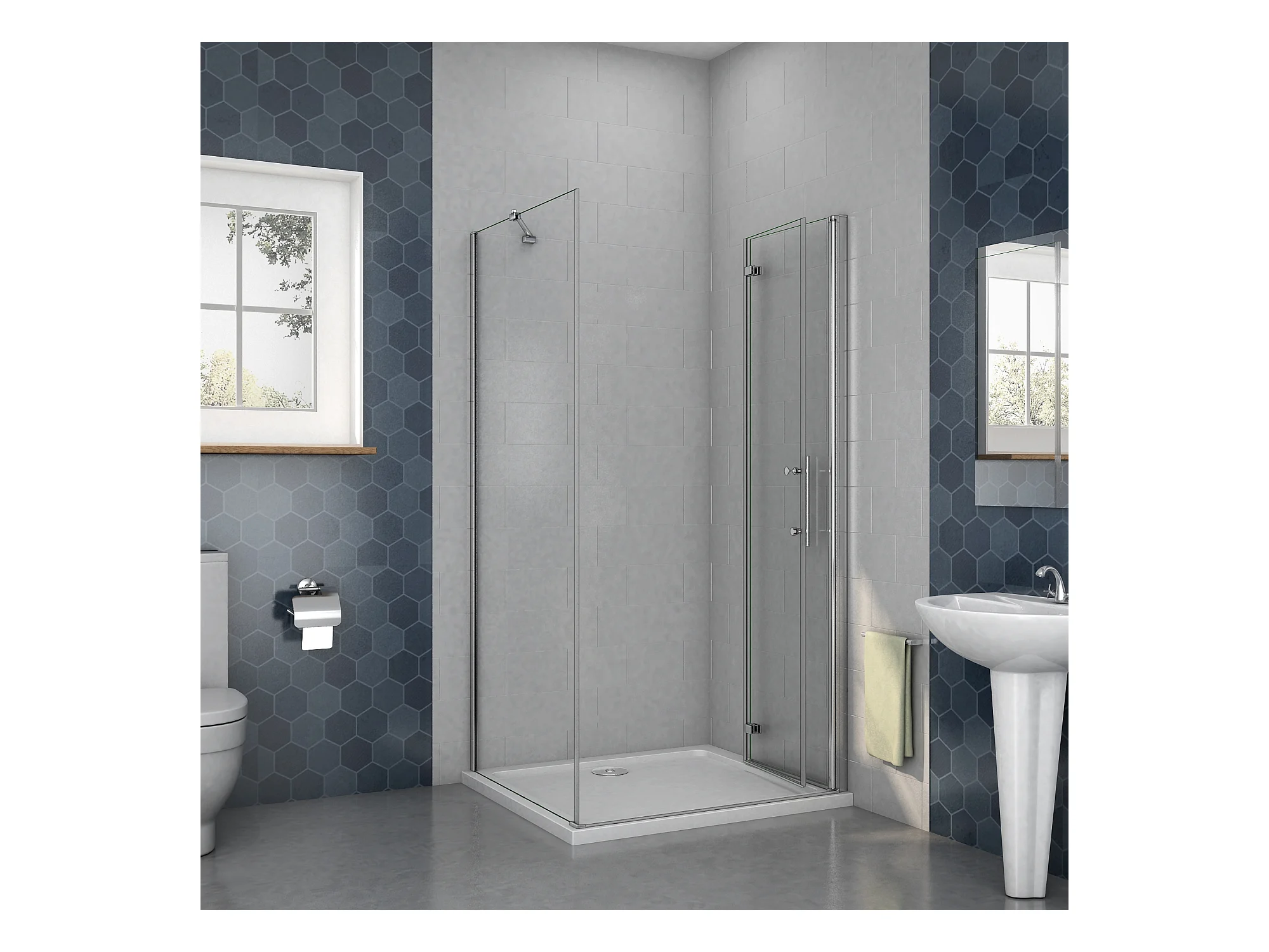 Cabine de duche rectangular Fole 6mm Anticalcário Tamanho:(880-900)x(980-1000)x1850mm + Base de duche 100x90x3cm + Acessórios de drenagem-AICA