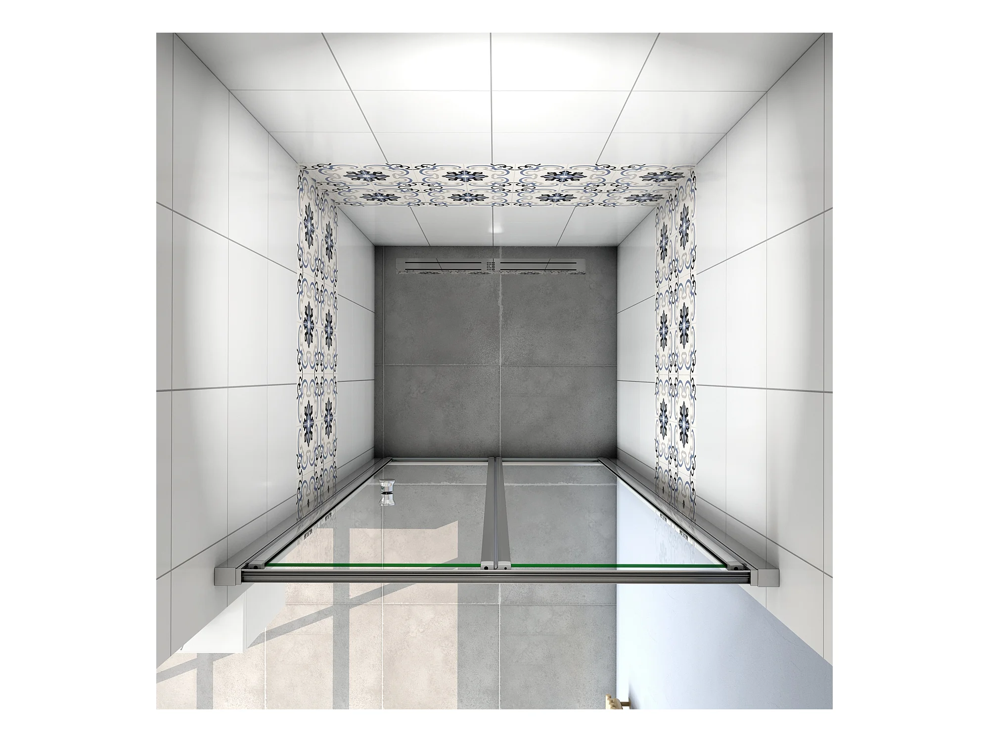 Porta de duche de fole e um Painel lateral Perfil cromado Vidro temperado 5mm (761-801)x(780-800)x1850mm-AICA
