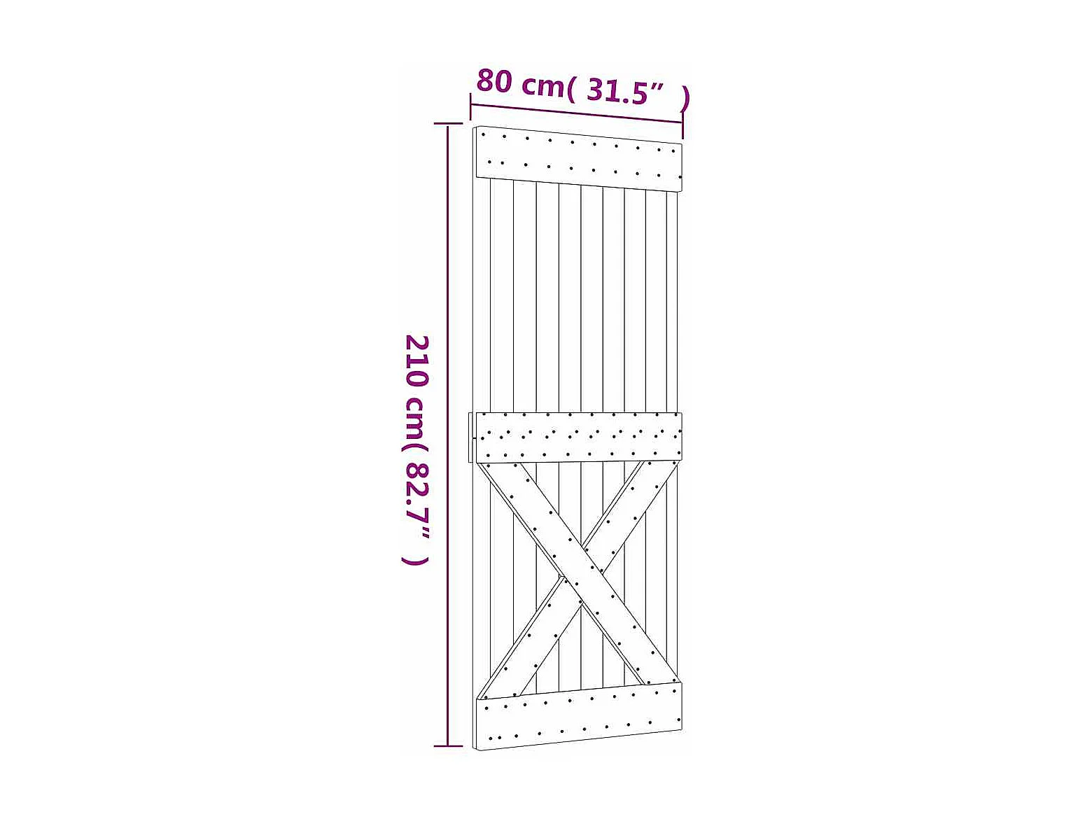 Porta de Correr NARVIK 80x210 cm em Madeira de Pinho Maciça para Ambientes Modernos
