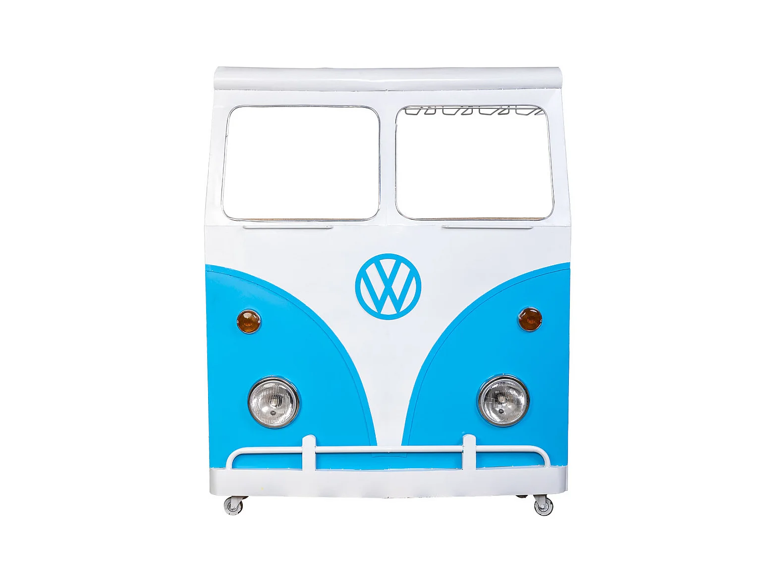 Garrafeira de metal e madeira azul para carrinha bar 150x55x105