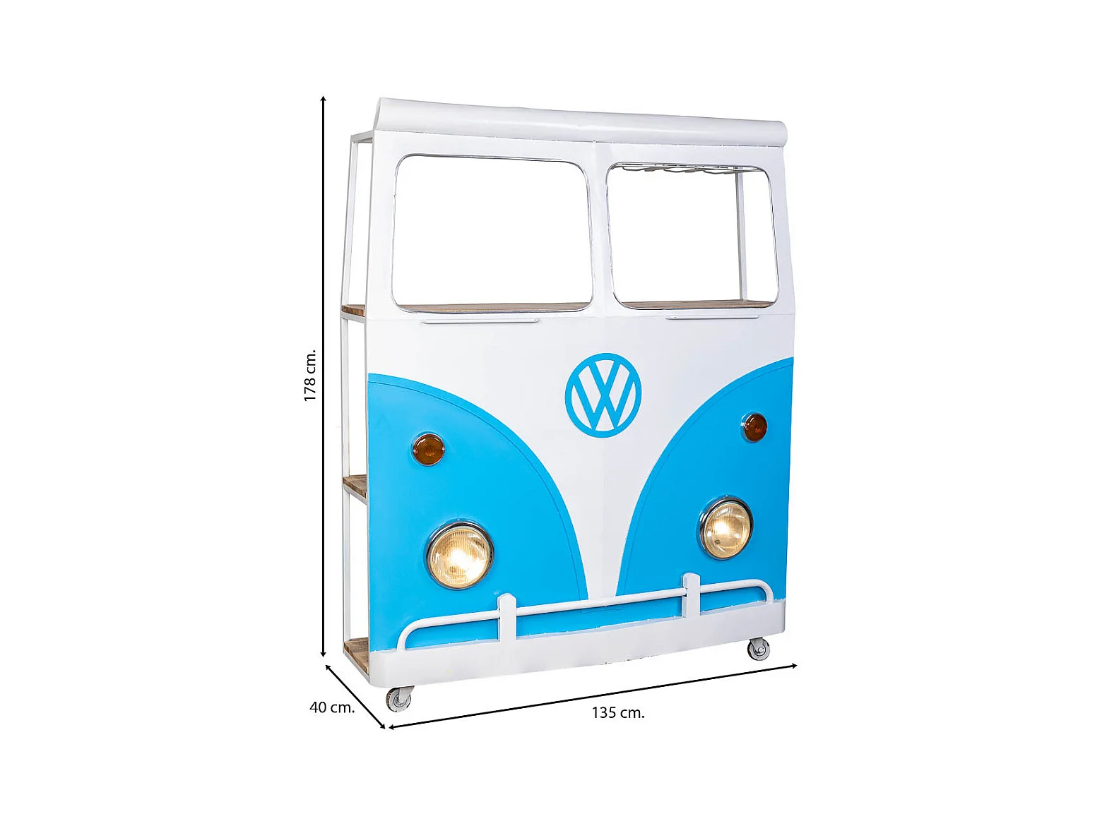 Porta-garrafas de metal e madeira azul van 135x40x178