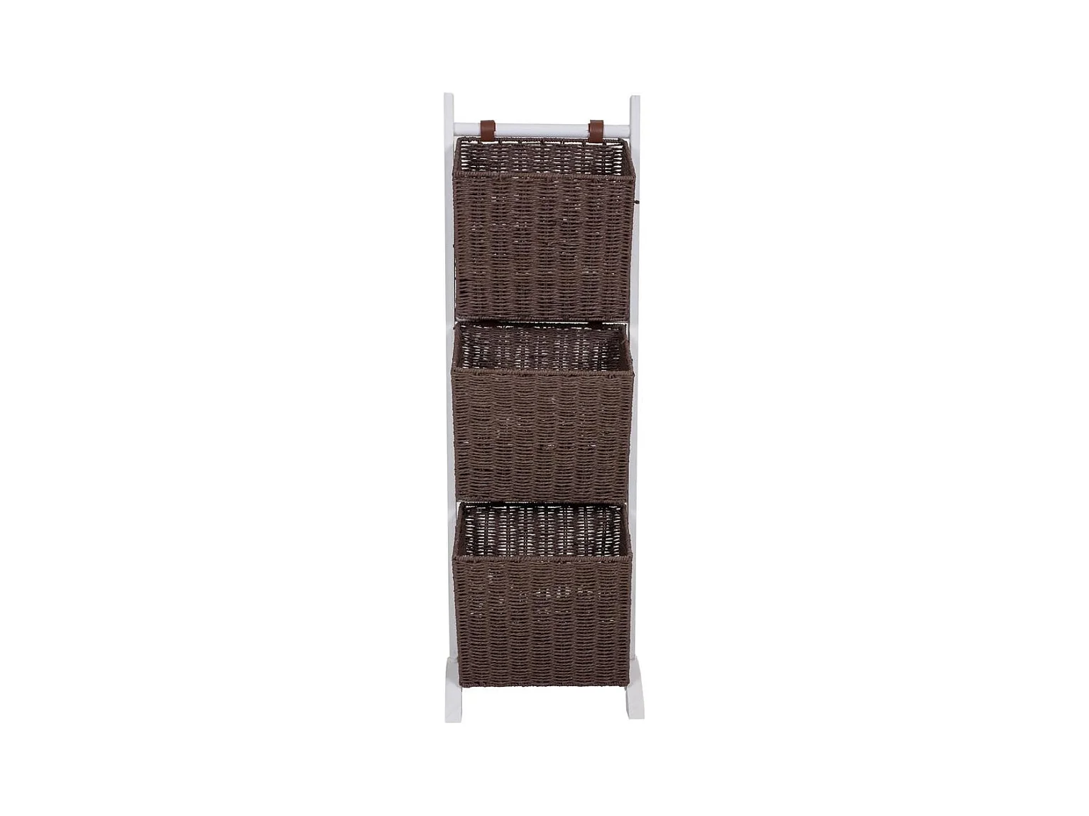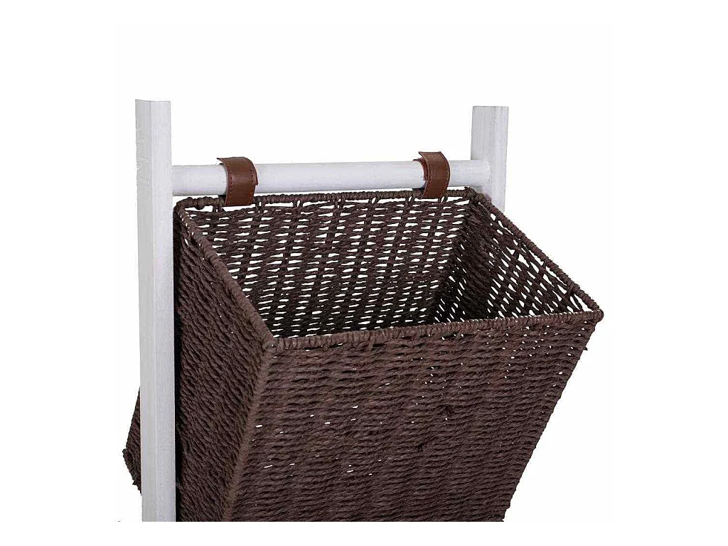 Porta-revistas com suporte de madeira e três cestos 37x27x115