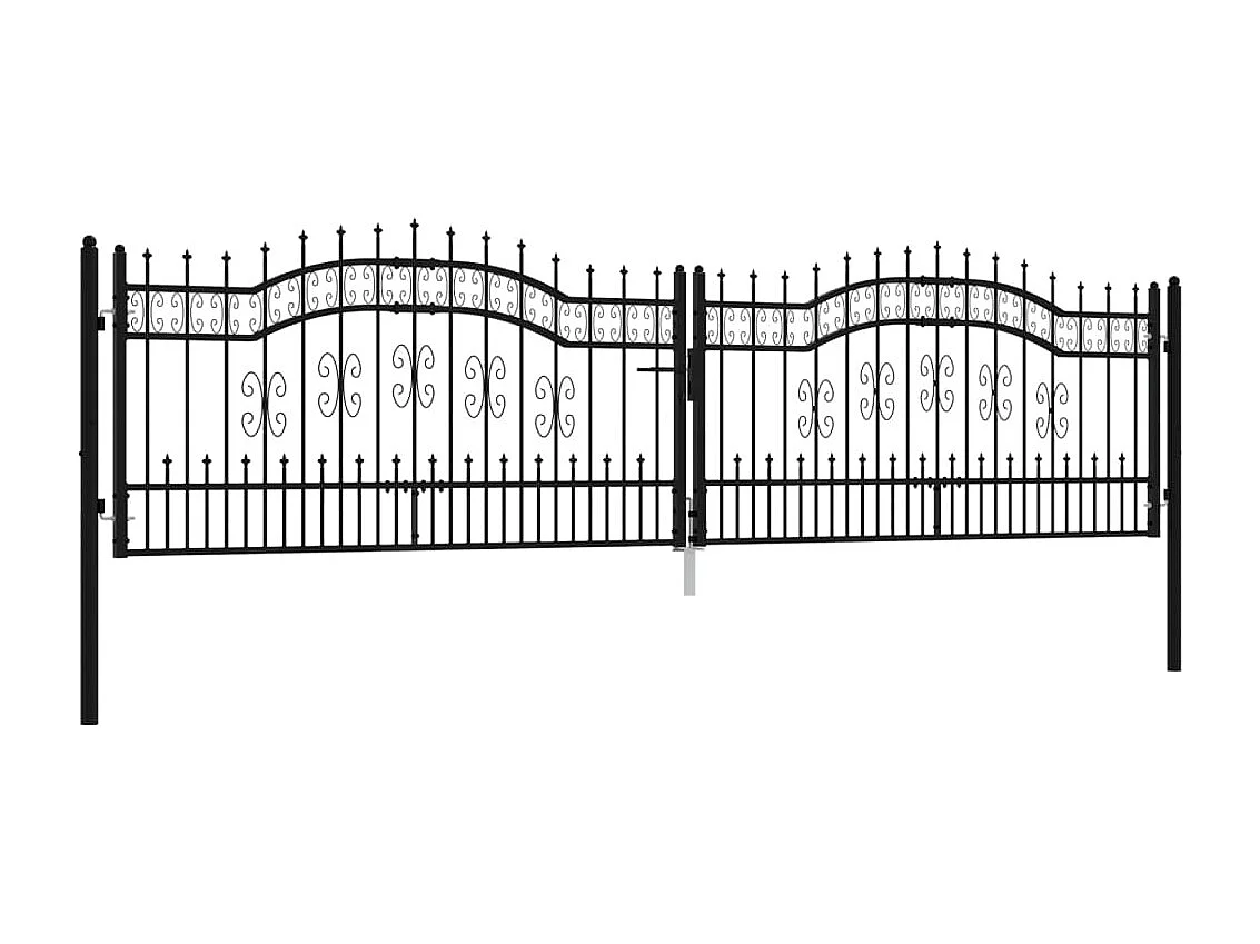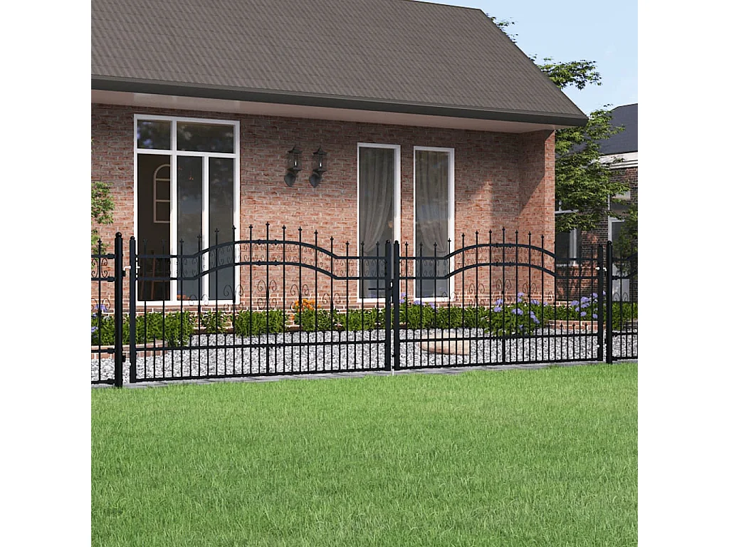Portal e ponta de lança Preto 406x151 cm Aço com pintura eletrostática