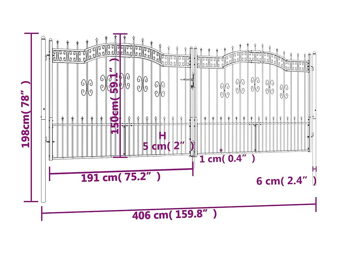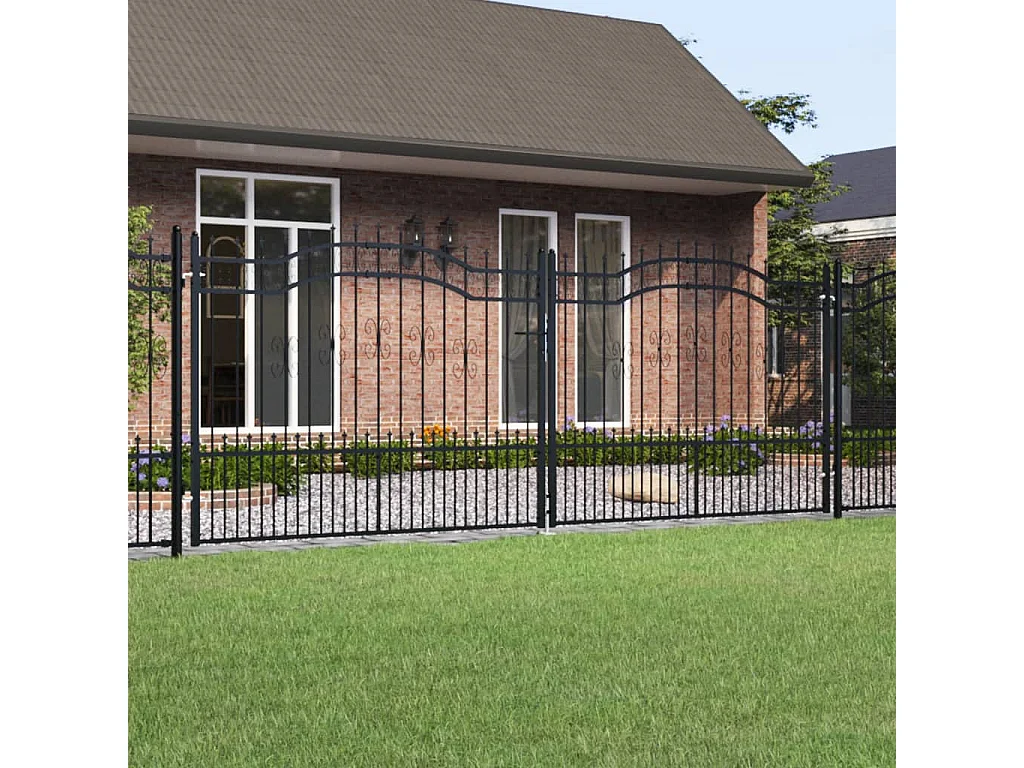 Portal e ponta de lança Preto 406x198 cm Aço com pintura eletrostática