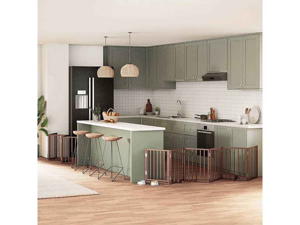 Portão cães com porta dobrável 15 painéis 750 cm álamo castanho