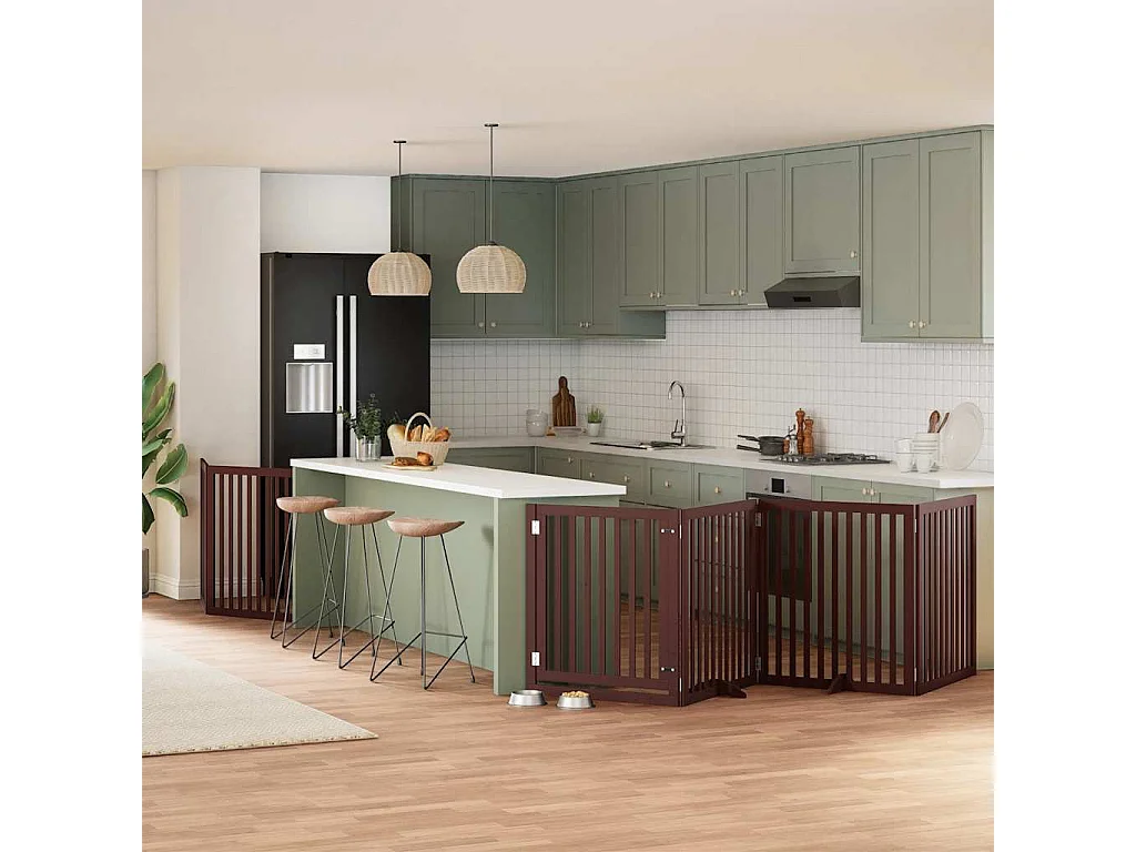 Portão cães com porta dobrável 8 painéis 640 cm álamo castanho