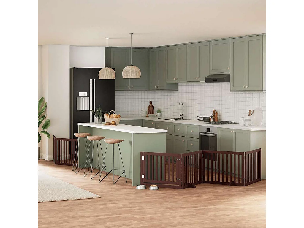 Portão cães com porta dobrável 8 painéis 640 cm álamo castanho