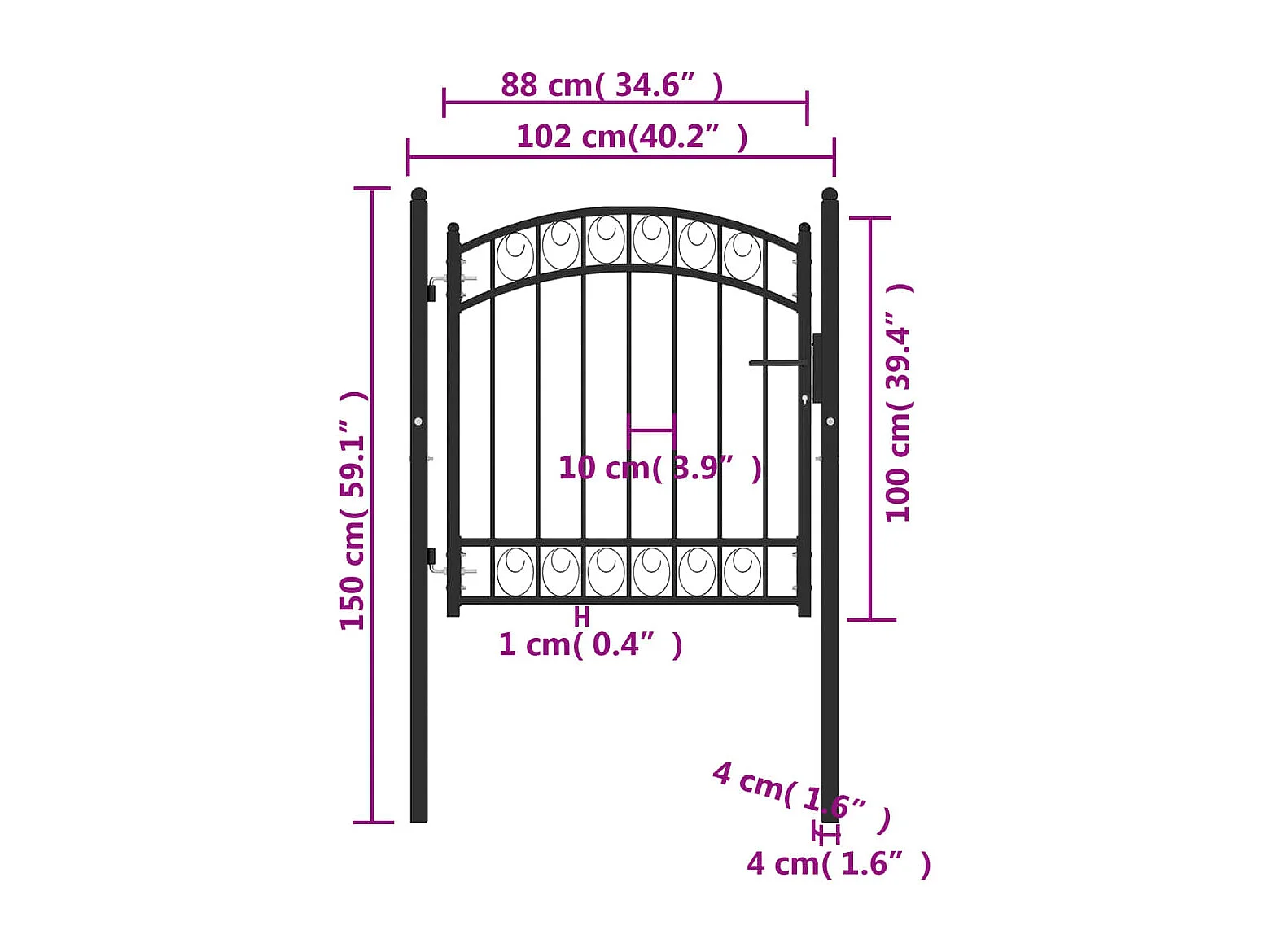 Portão de cerca com topo arqueado Aço 100x100 cm Preto