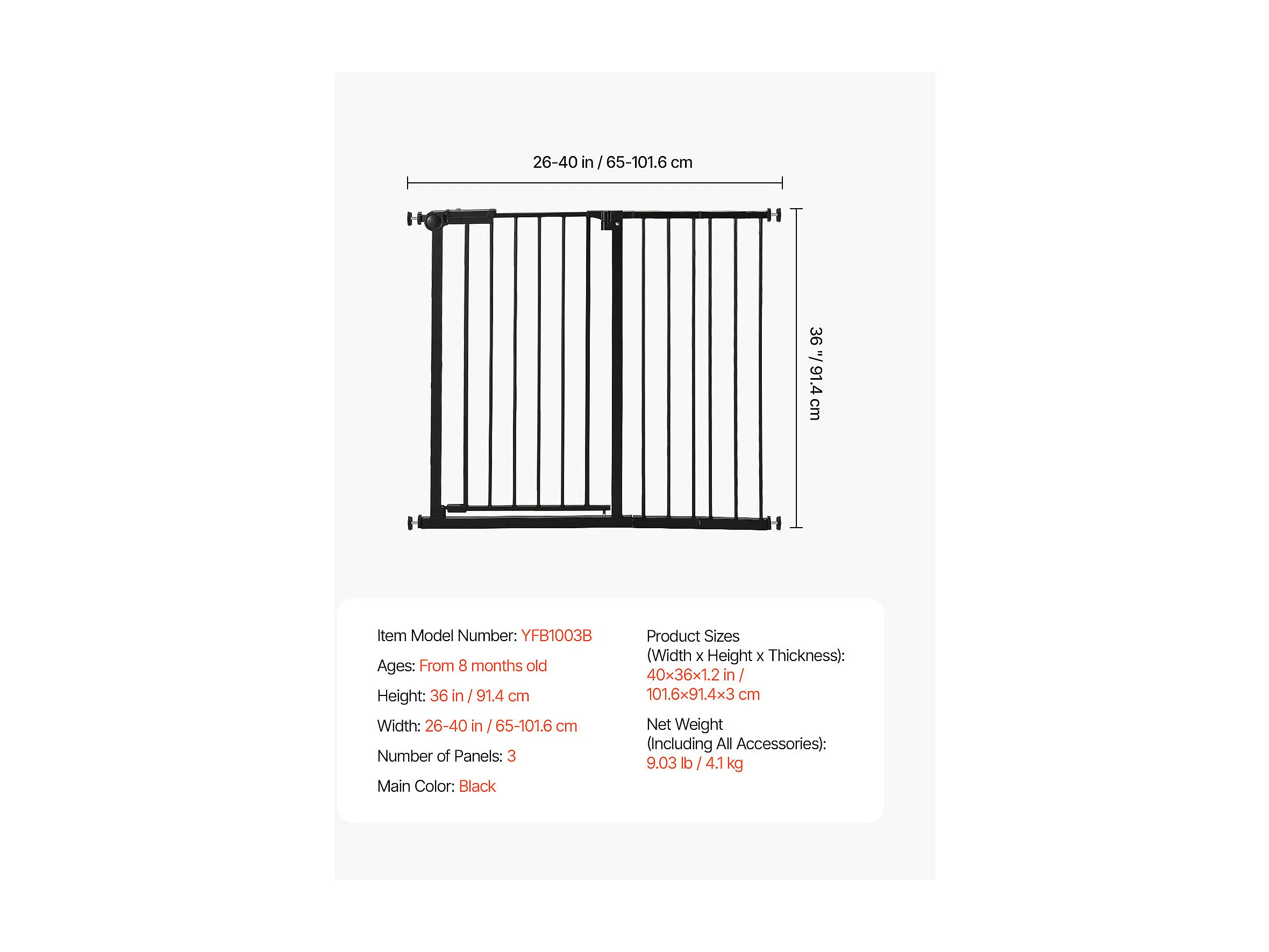 Portão de Segurança para Animais de Estimação, SucceBuy Portão de Segurança Expansível para Cães 65-101,6 x 91,4 cm Preto