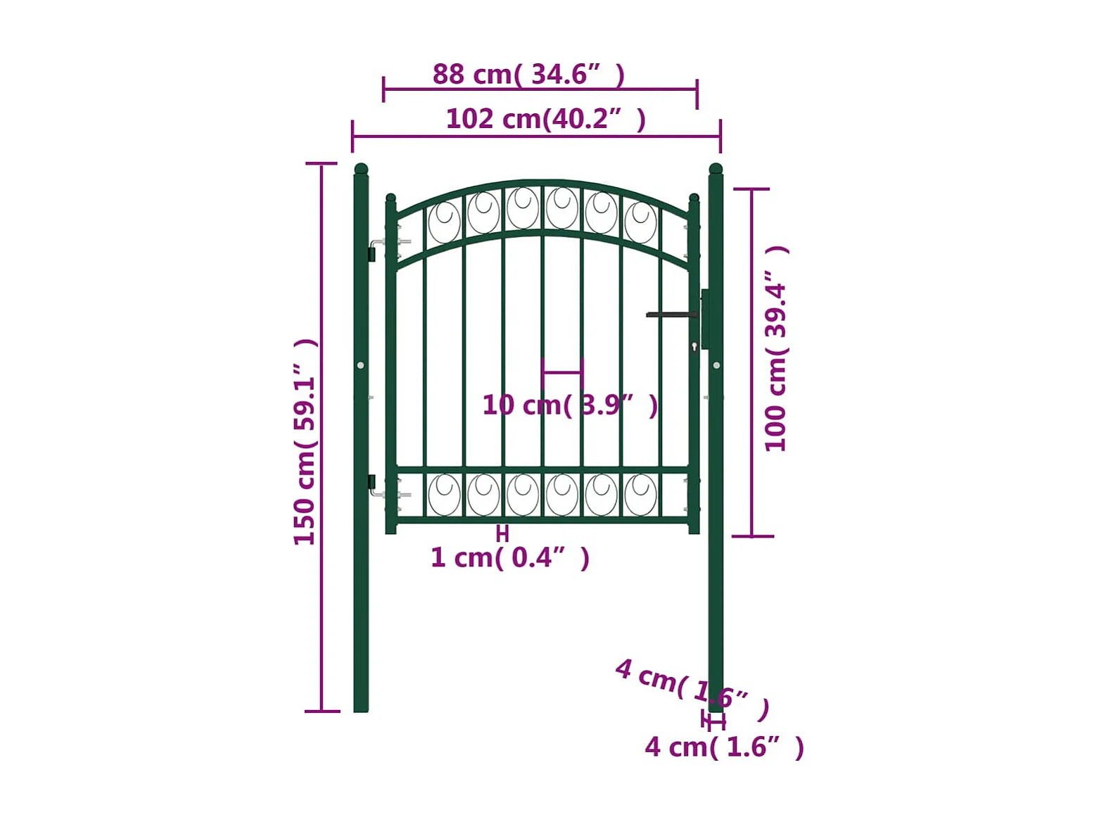 Portão de vedação com topo arqueado Aço 100x100 cm Verde