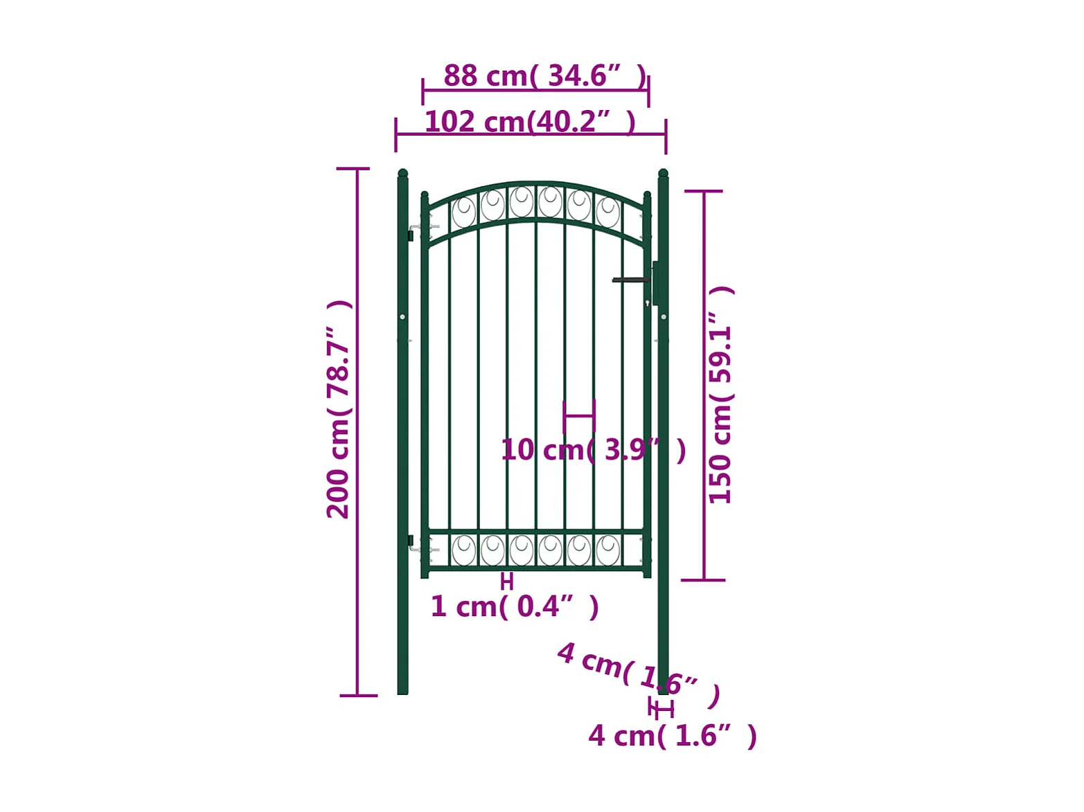 Portão de vedação com topo arqueado Aço 100x150 cm Verde