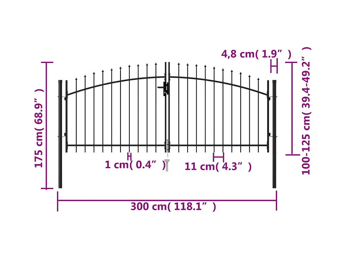 Portão de jardim com topo arqueado Aço 100x250 cm Preto