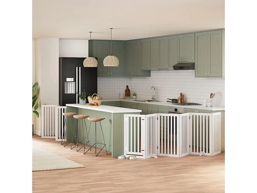 Portão para cães com porta dobrável 12 painéis 600cm álamo branco