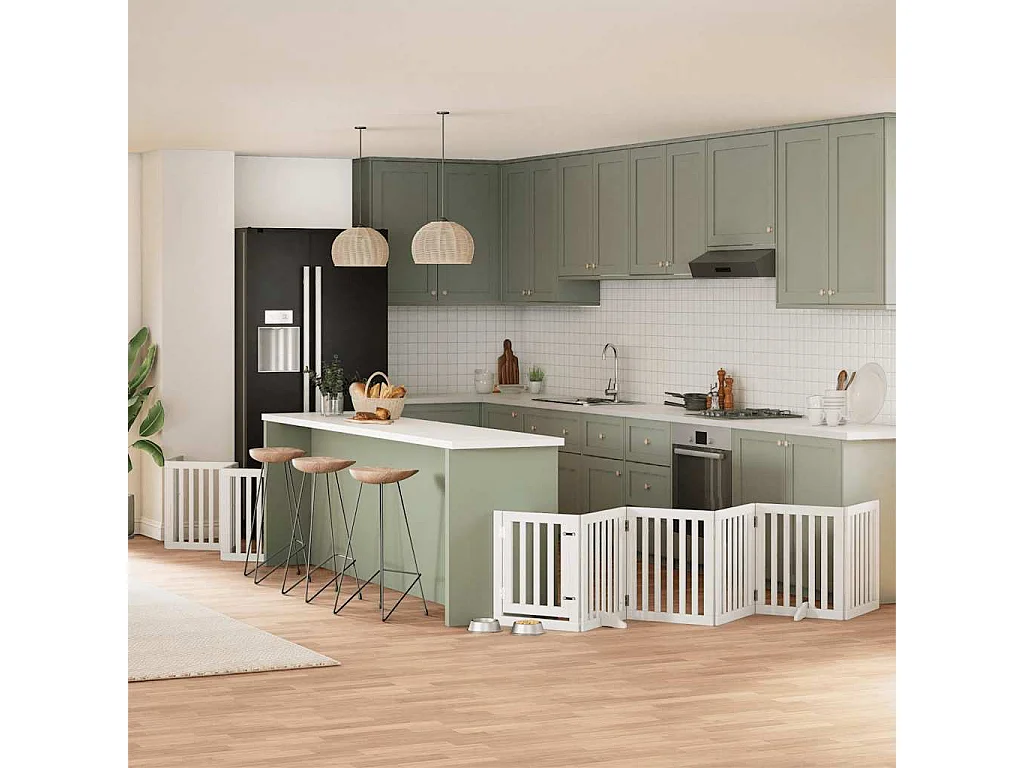Portão para cães com porta dobrável 12 painéis 600cm álamo branco