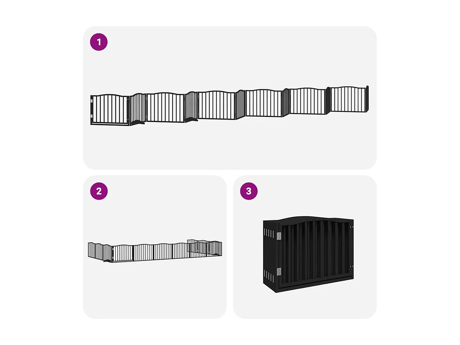 Portão para cães com porta dobrável 12 painéis 960 cm álamo preto