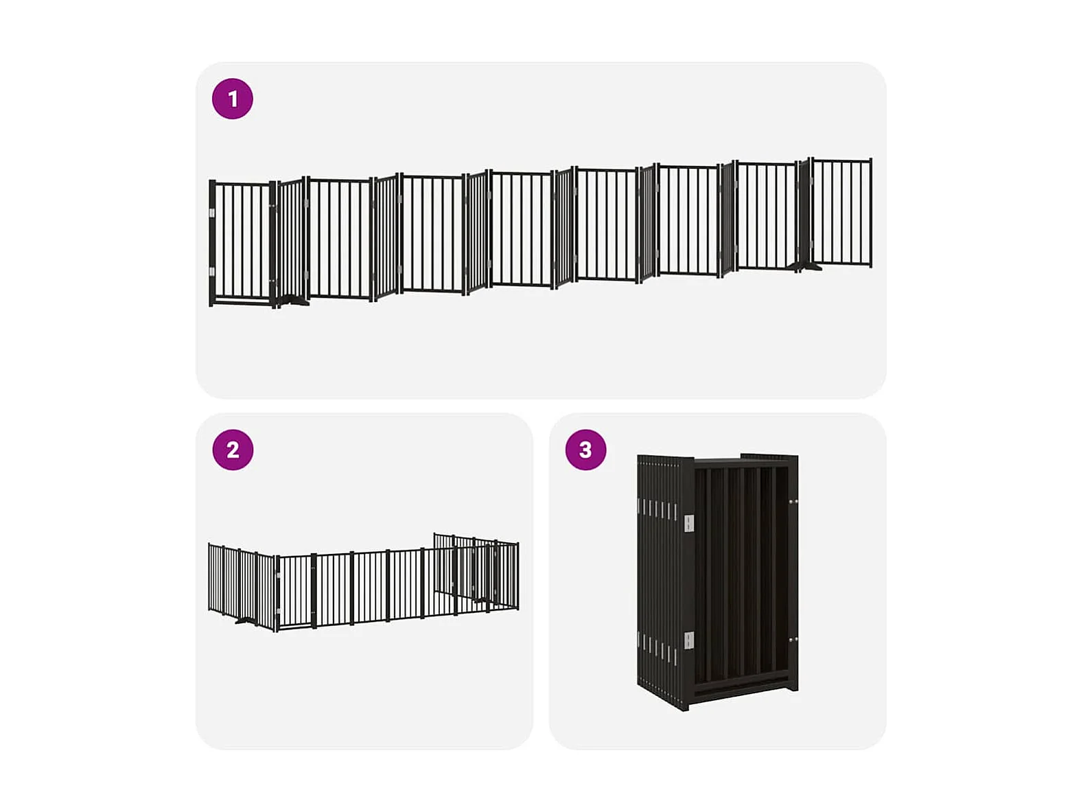 Portão para cães com porta dobrável 15 painéis 750 cm álamo preto