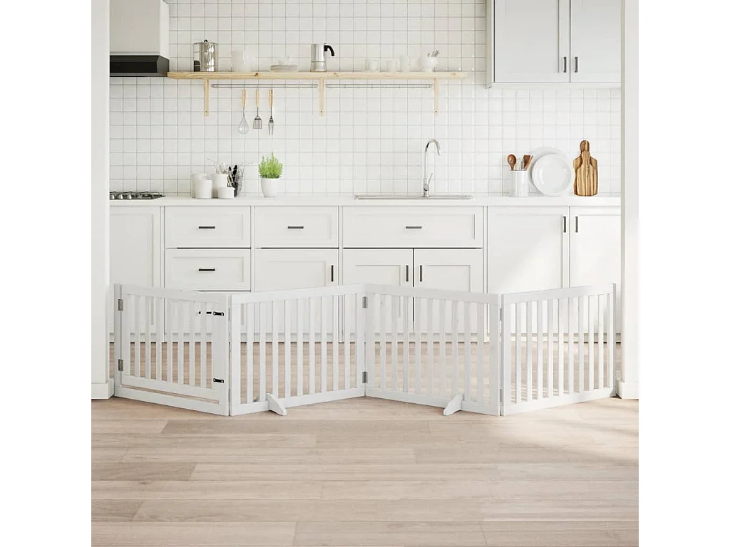 Portão para cães com porta dobrável 4 painéis 320 cm álamo branco