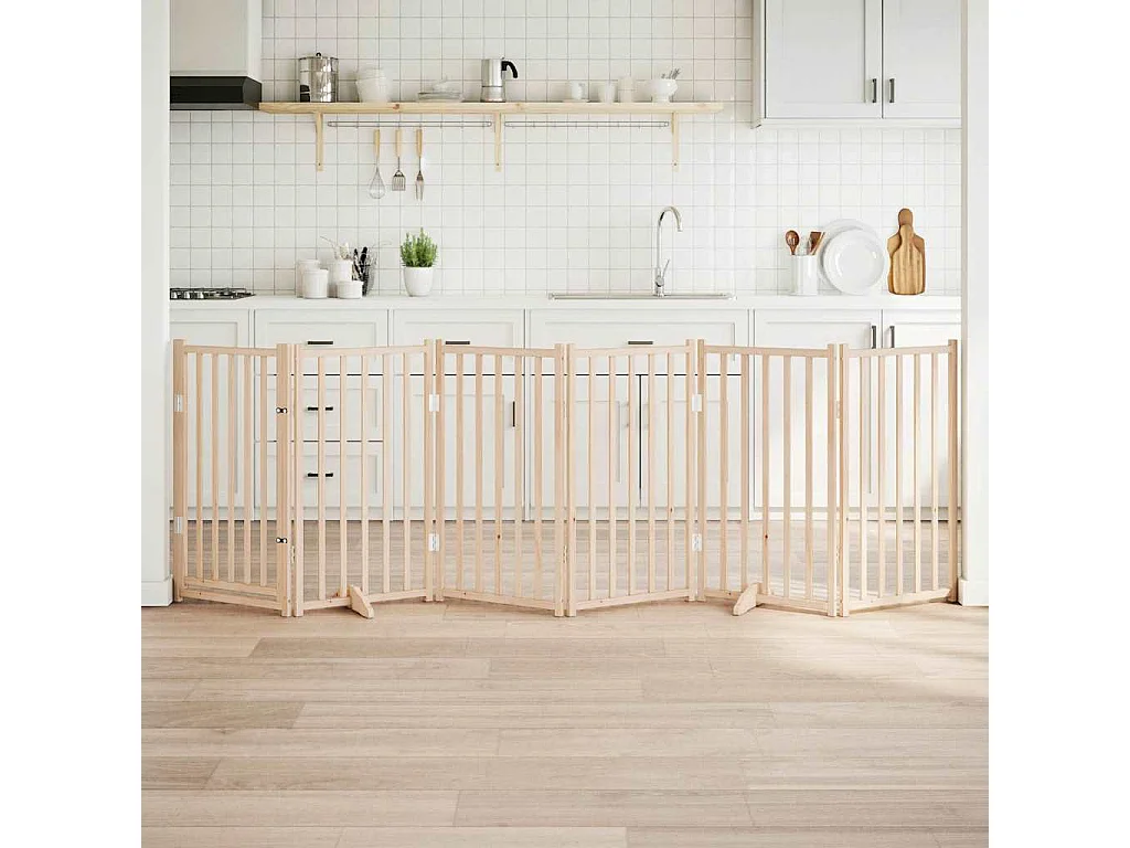Portão para cães com porta dobrável 6 painéis 300 cm abeto maciço
