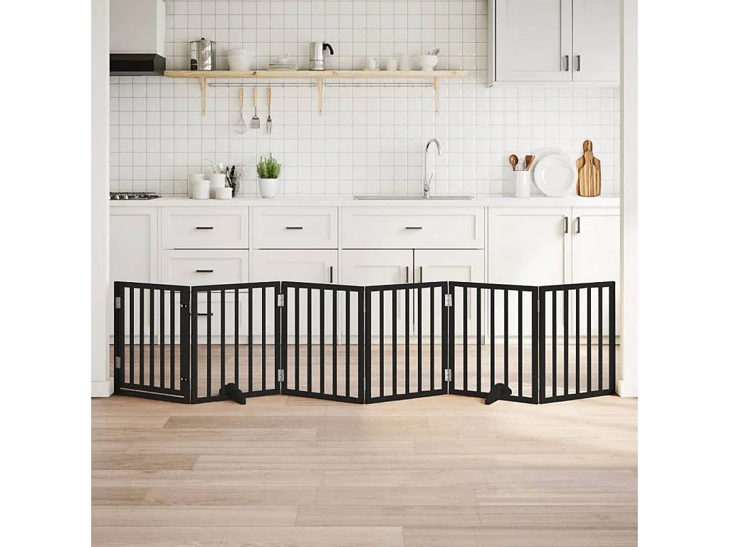Portão para cães com porta dobrável 6 painéis 300 cm álamo preto