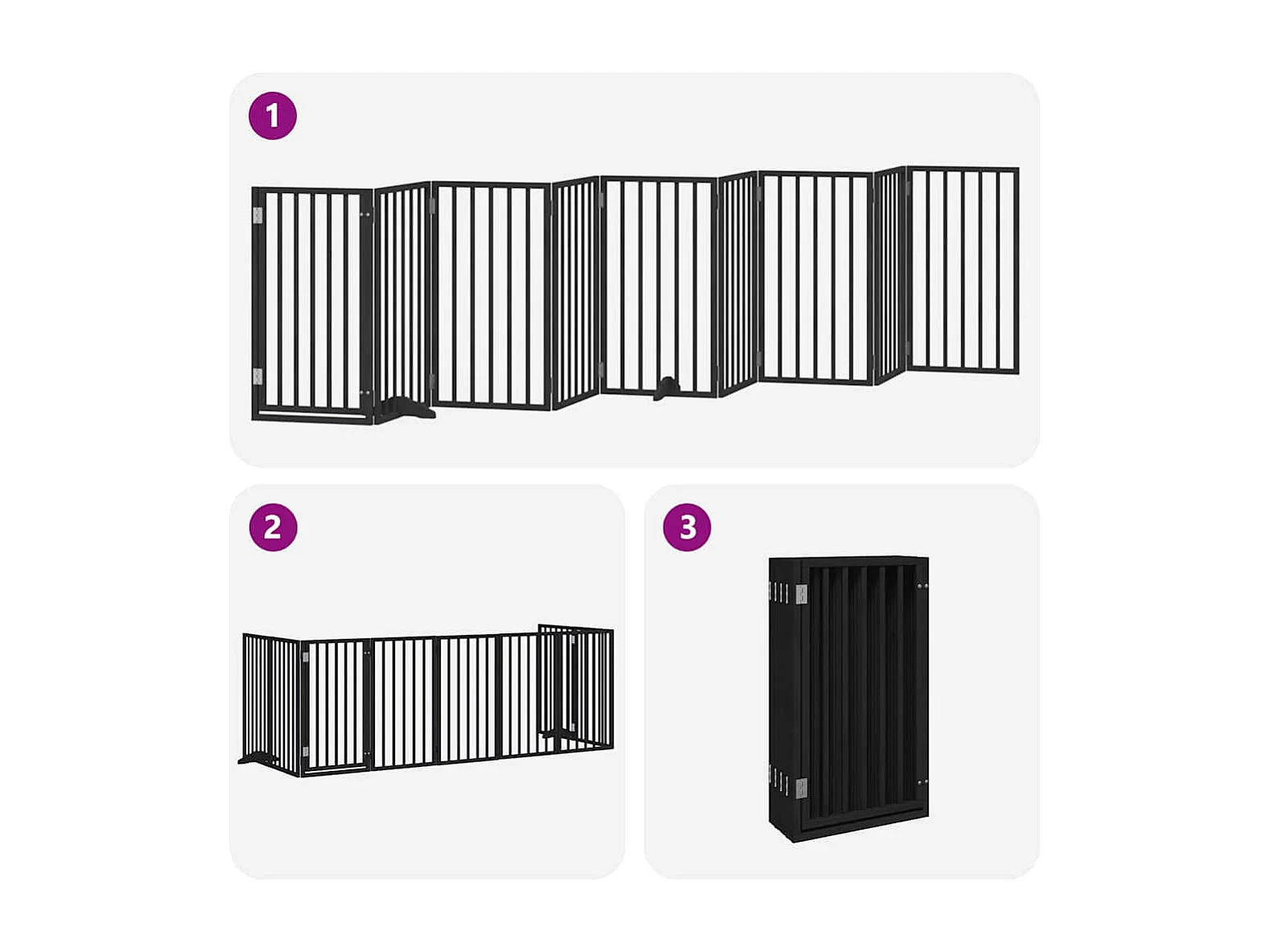 Portão para cães com porta dobrável 9 painéis 450 cm álamo preto