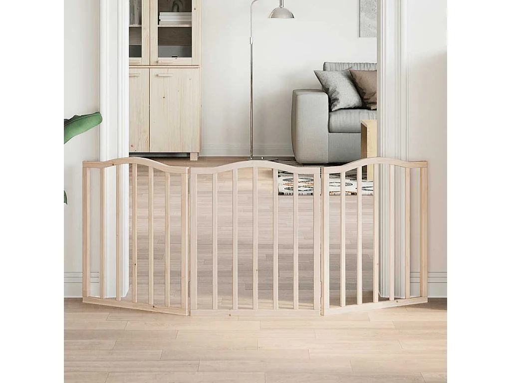 Portão para cães dobrável 3 painéis 150 cm madeira de álamo