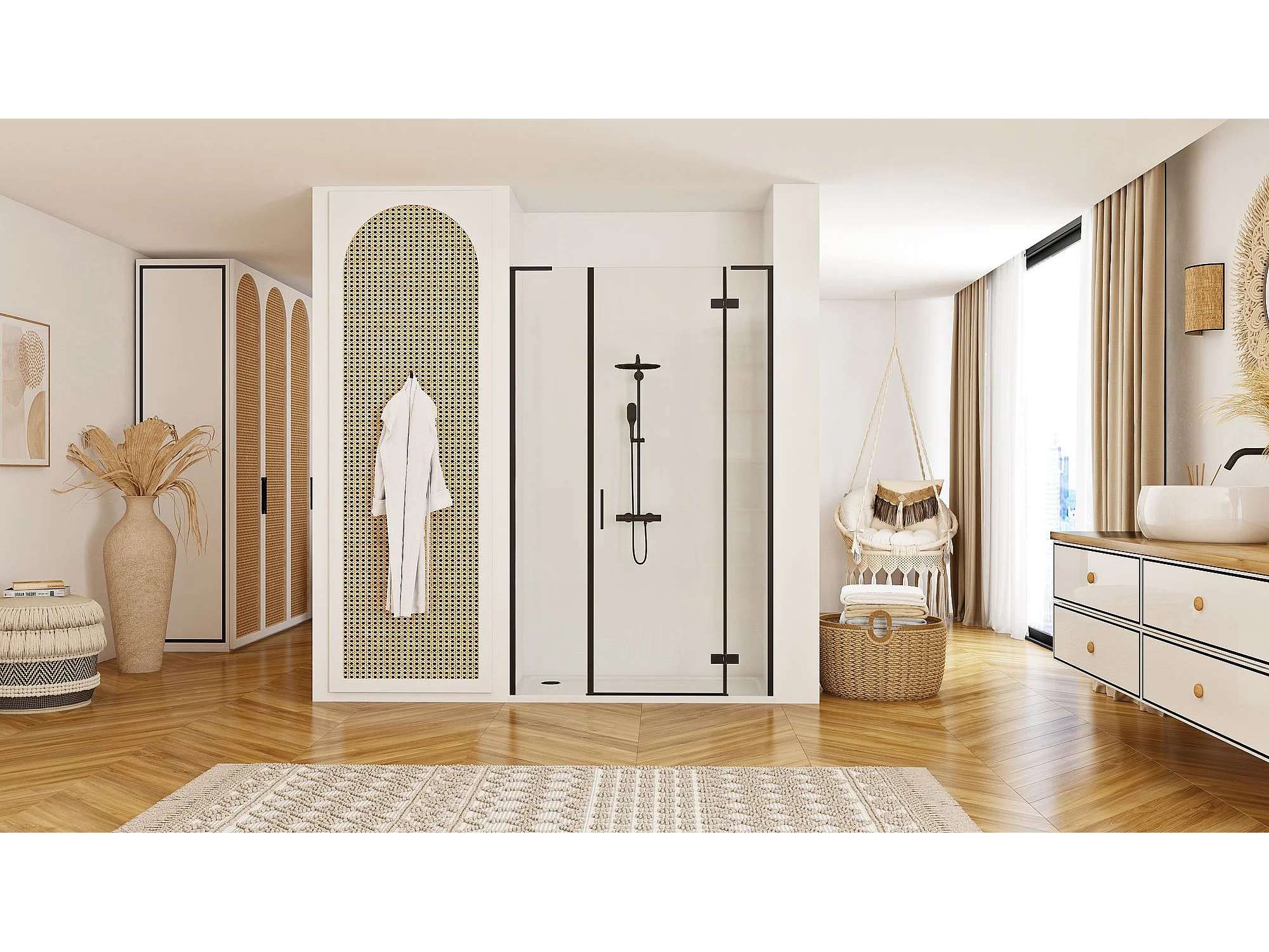 Portas De Chuveiro Rea Hugo 130 Black + Parede De Chuveiro