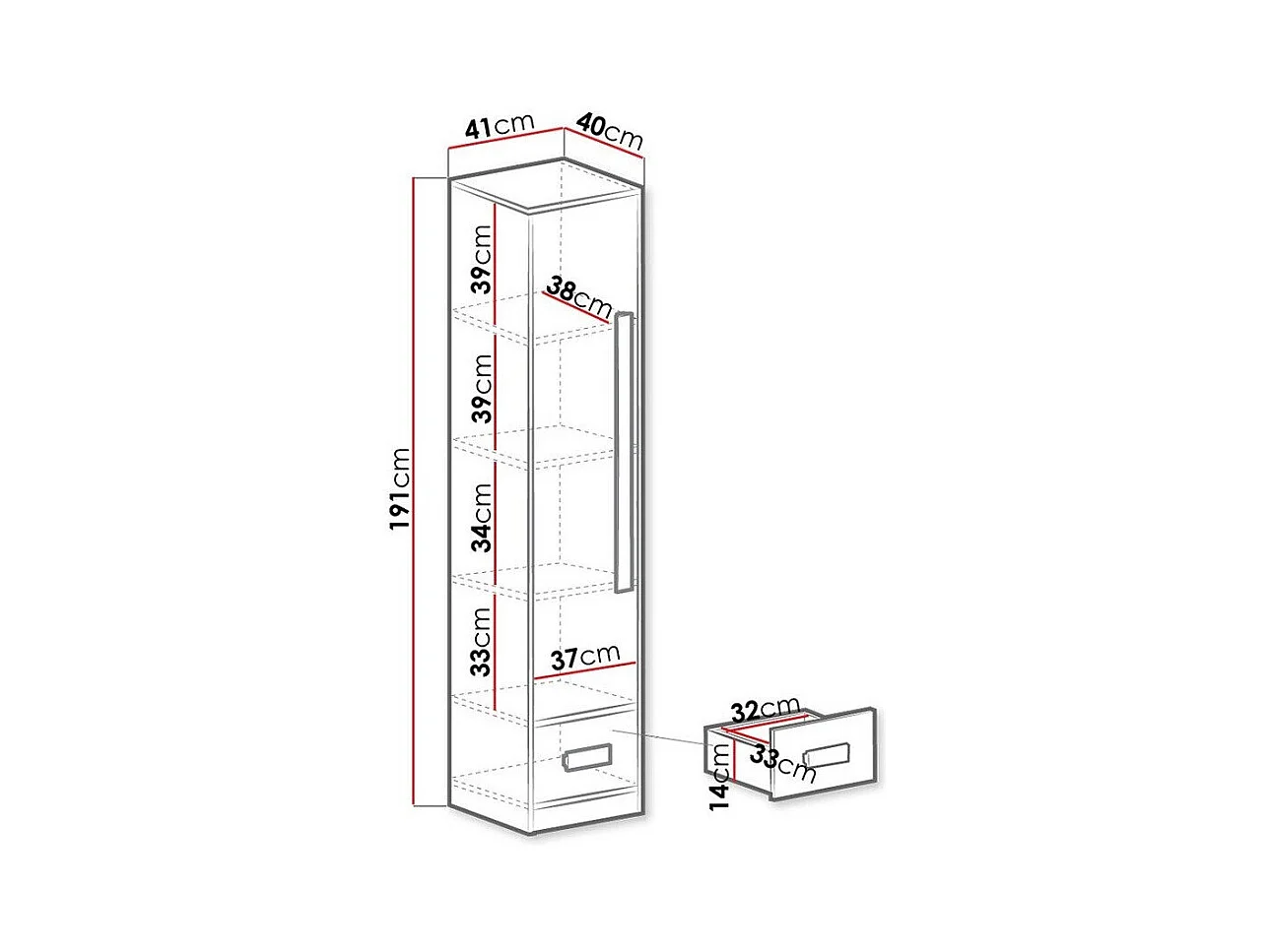 Estante Salmere 105, Com gavetas, Placa de aglomerado laminado