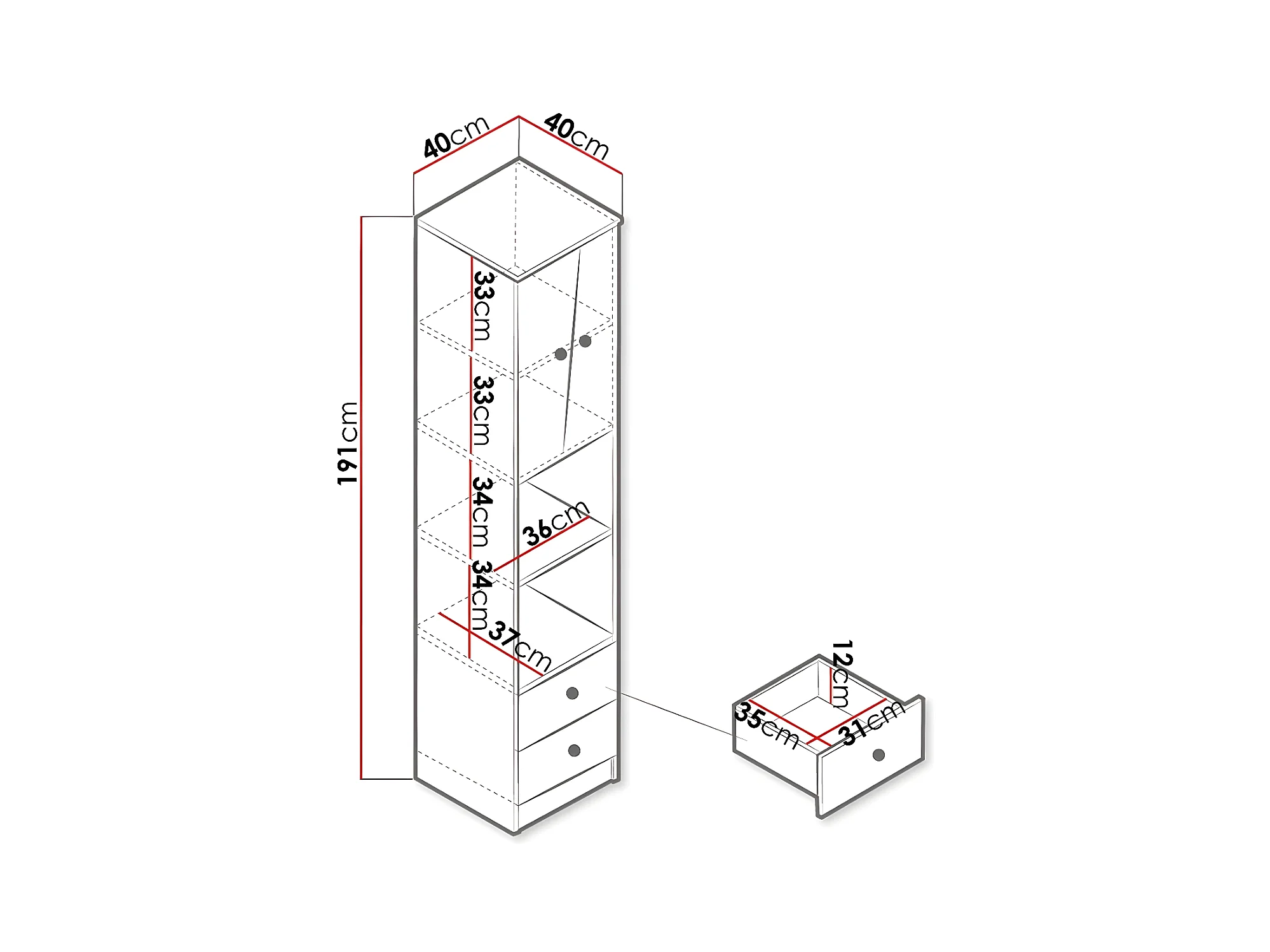 Estante Almira 103, Com gavetas, Placa de aglomerado laminado