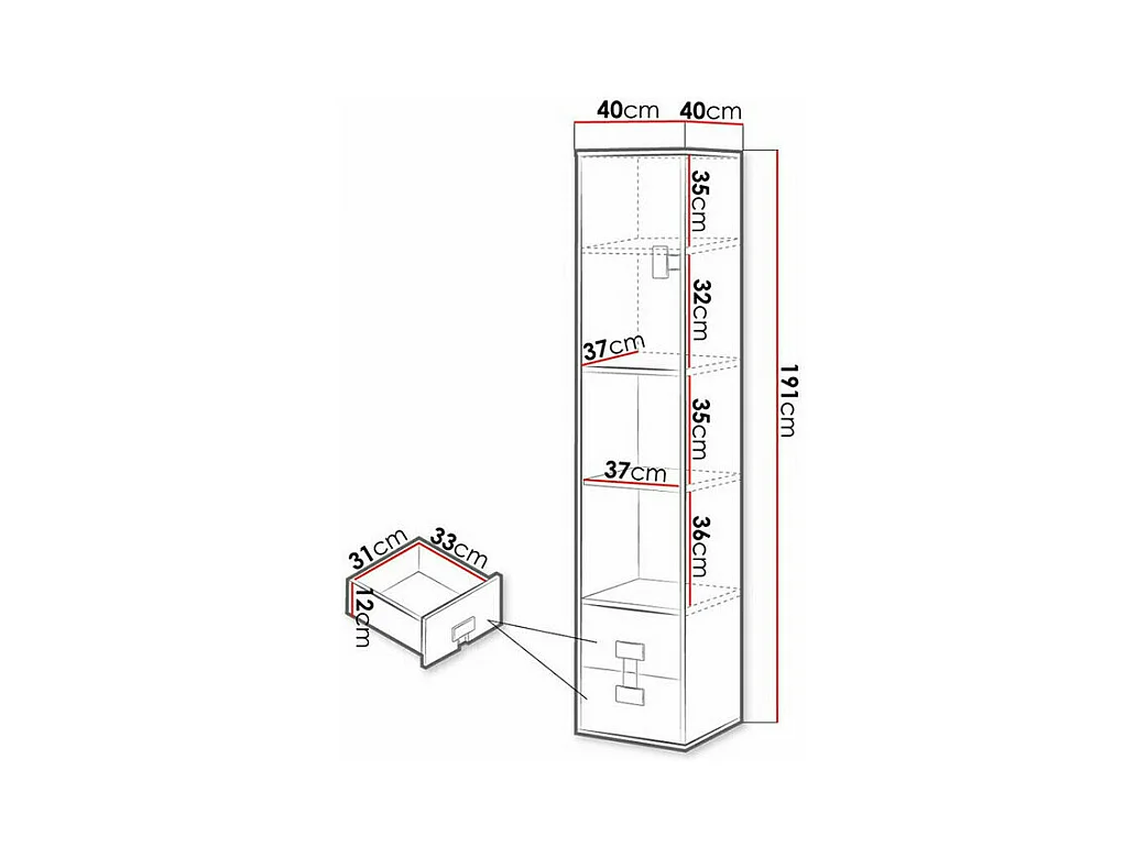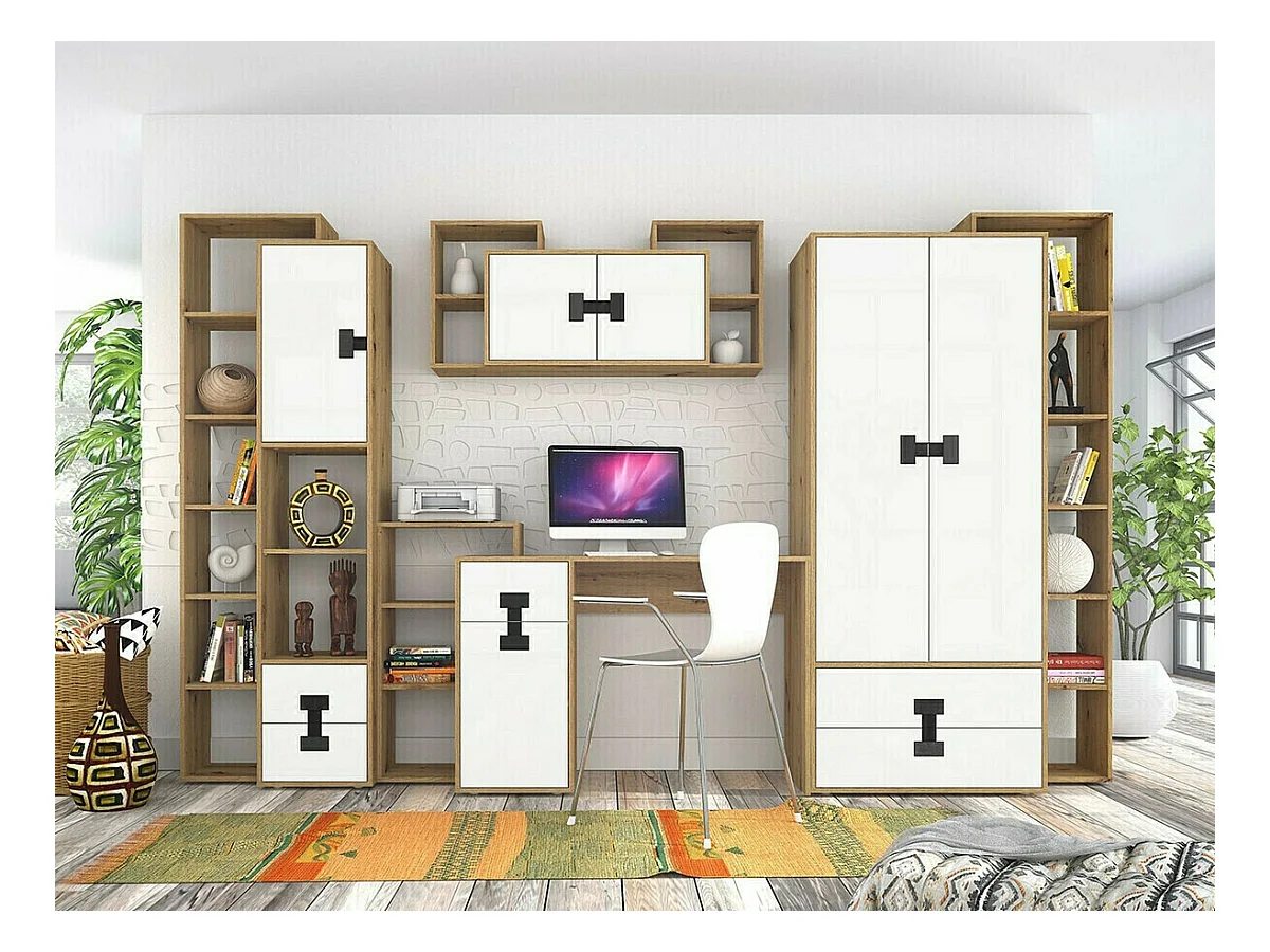 Estante Salmere 105, Com gavetas, Placa de aglomerado laminado