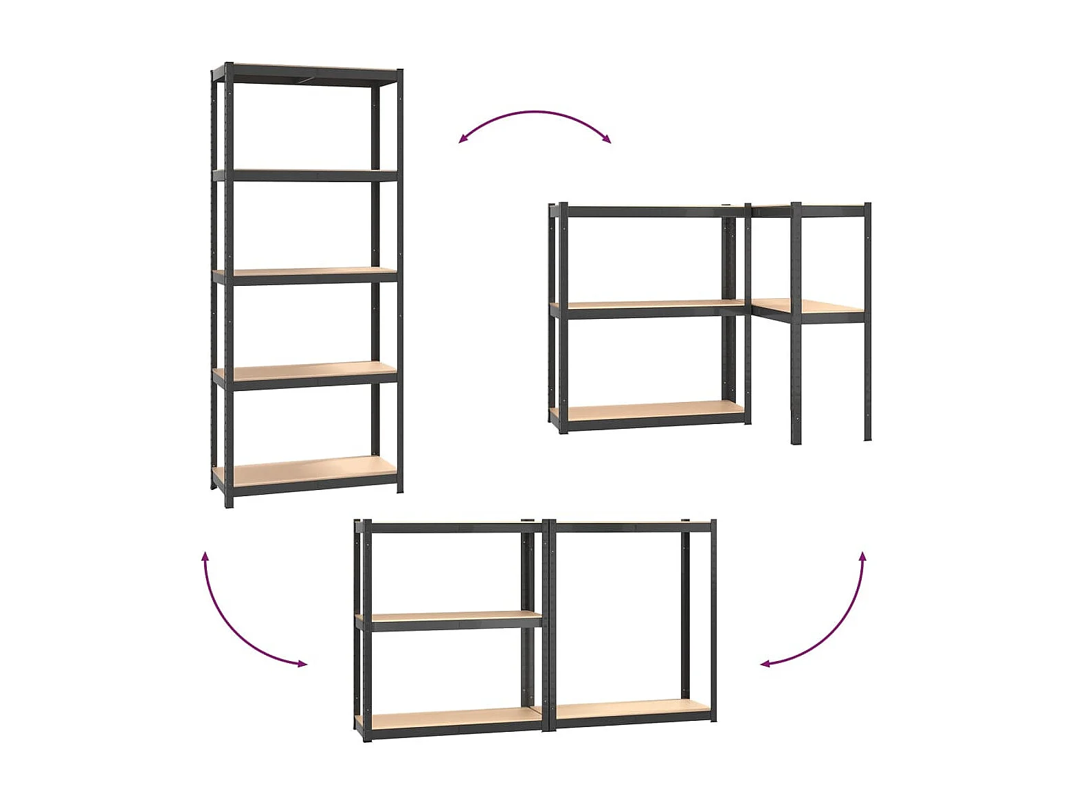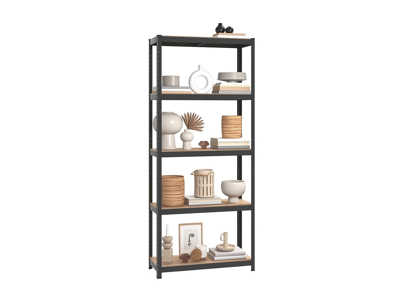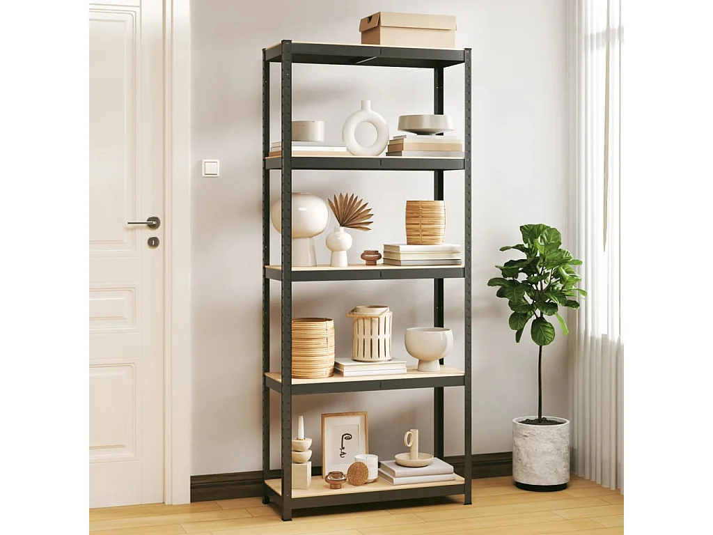 Prateleira de armazenamento de 5 níveis Aço antracite madeira projetada