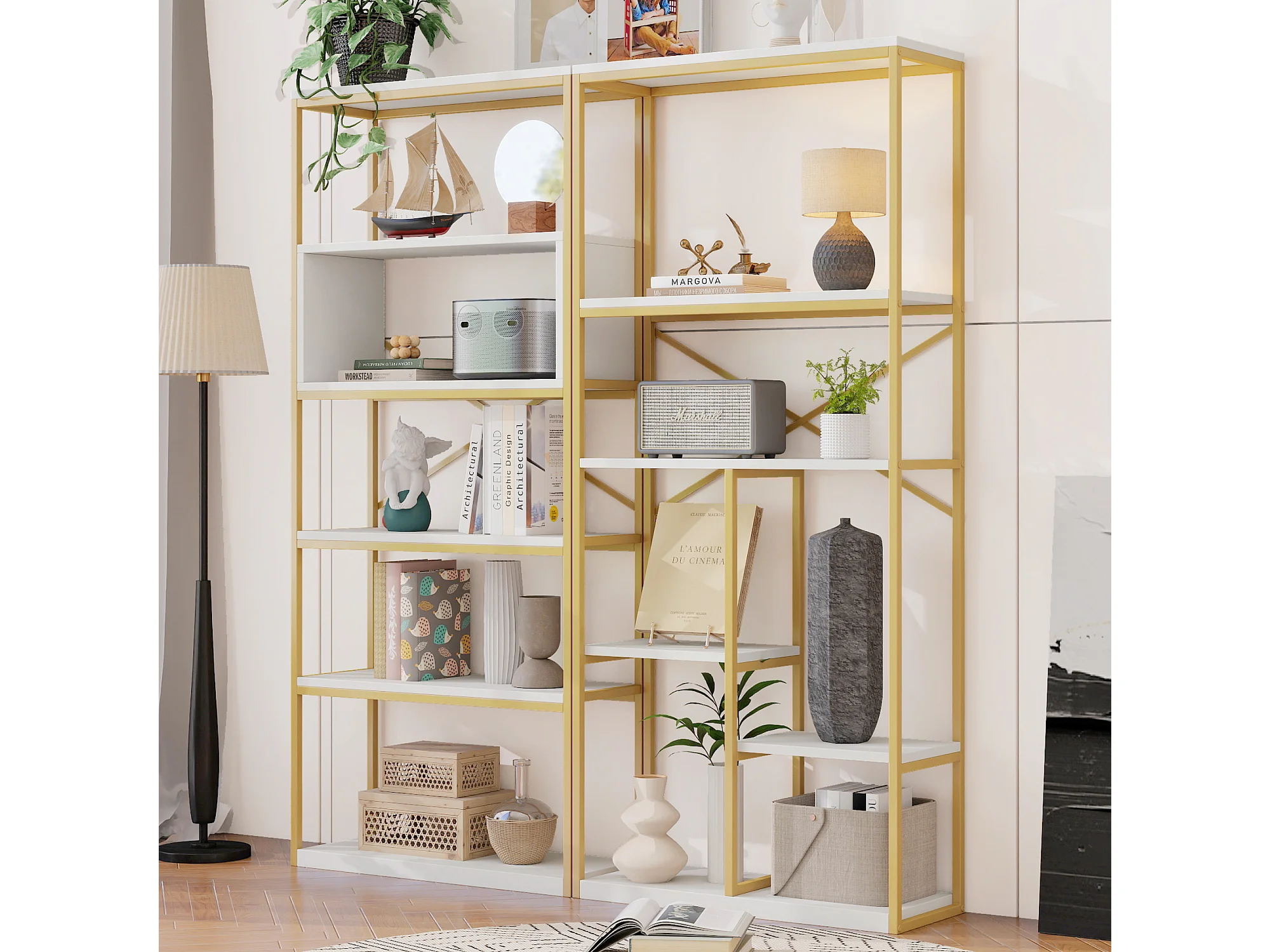 Prateleira de armazenamento moderna em estilo minimalista - 160 x 29,5 x 180 cm - MDF + metal - branco + dourado
