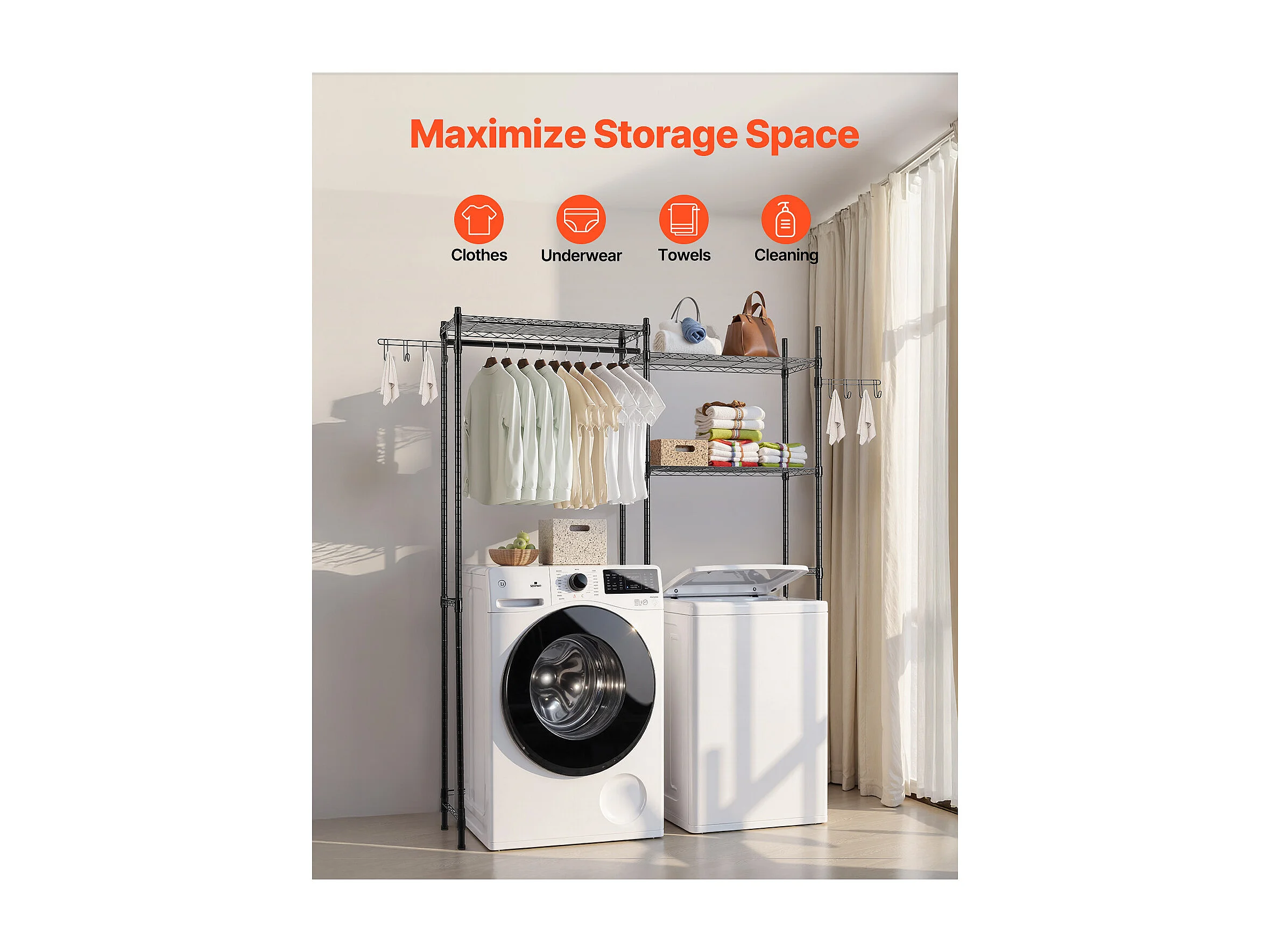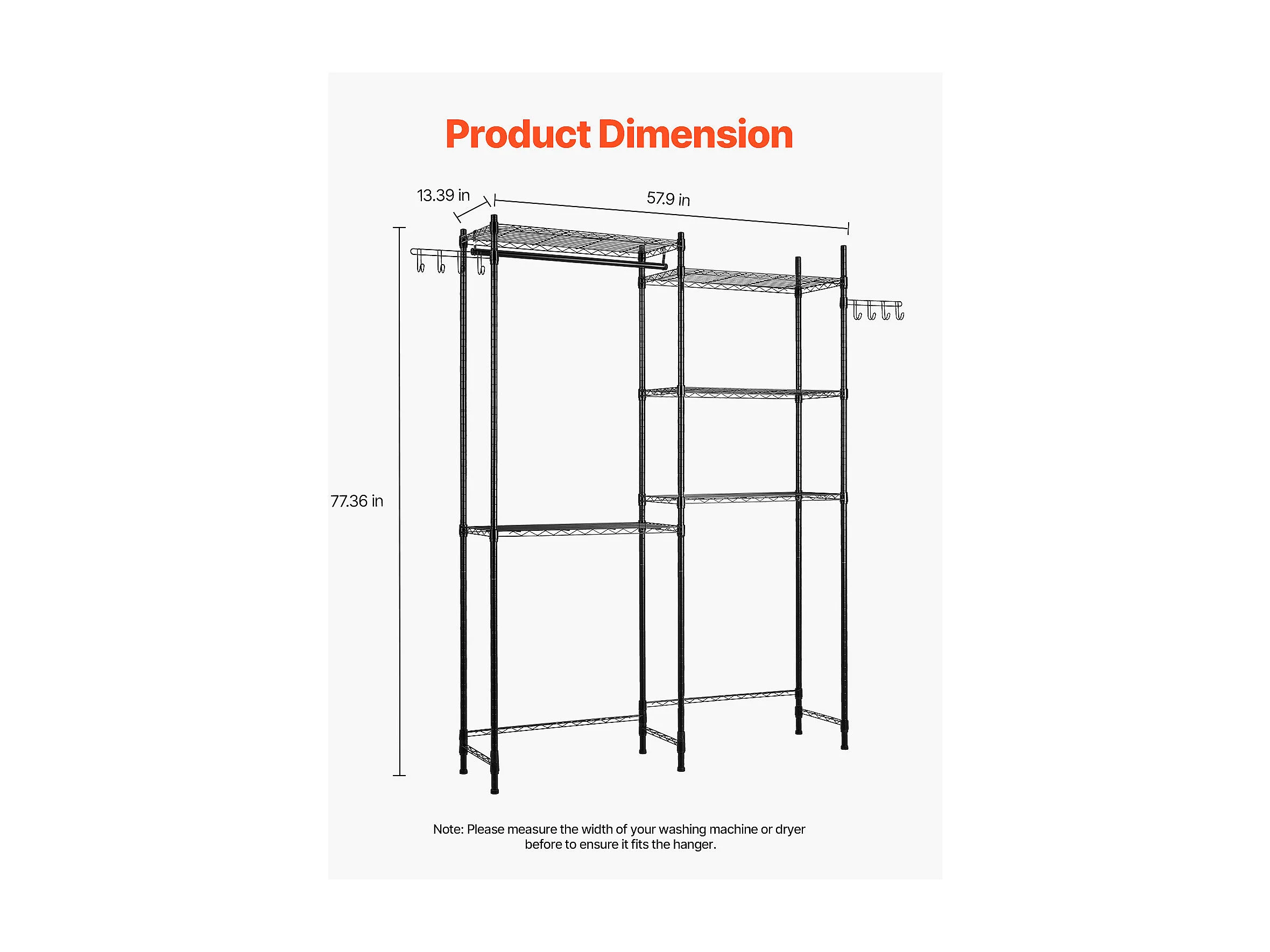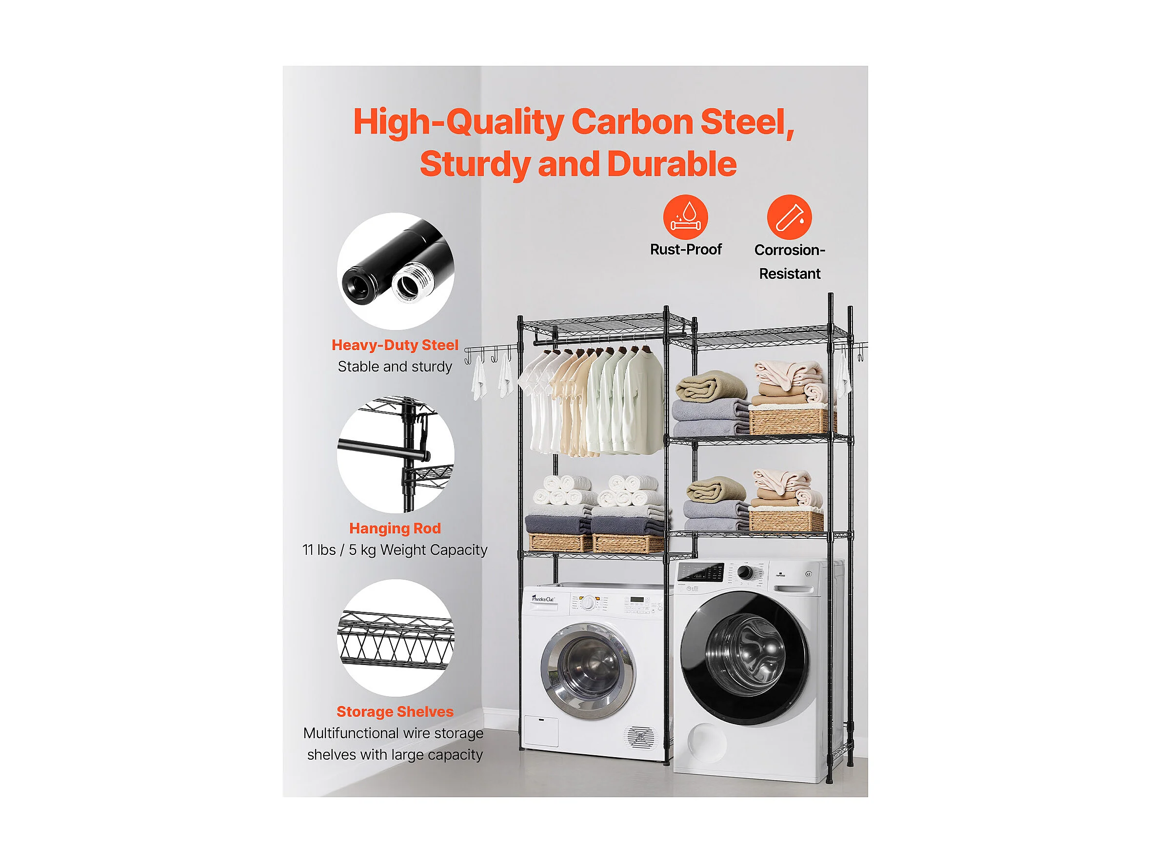 Prateleira de Arrumação SucceBuy, para Máquina de Lavar e Secar Roupa, com 5 Níveis, Preta