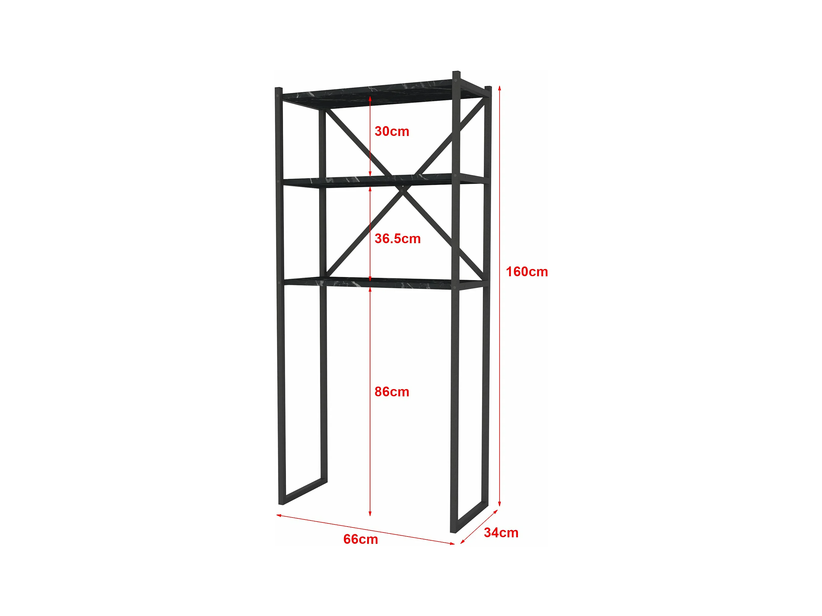 Prateleira de banheiro de 3 camadas independente 161 x 525 x 245 cm preta 03_0007066