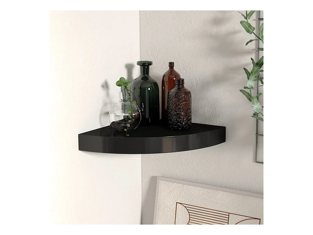 Prateleira de canto suspensa 35x35x3,8 cm MDF preto brilhante PT787573