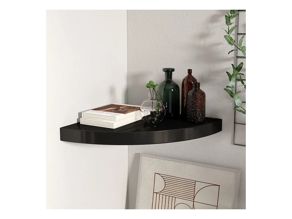 Prateleira de canto suspensa 35x35x3,8 cm MDF preto brilhante PT787573
