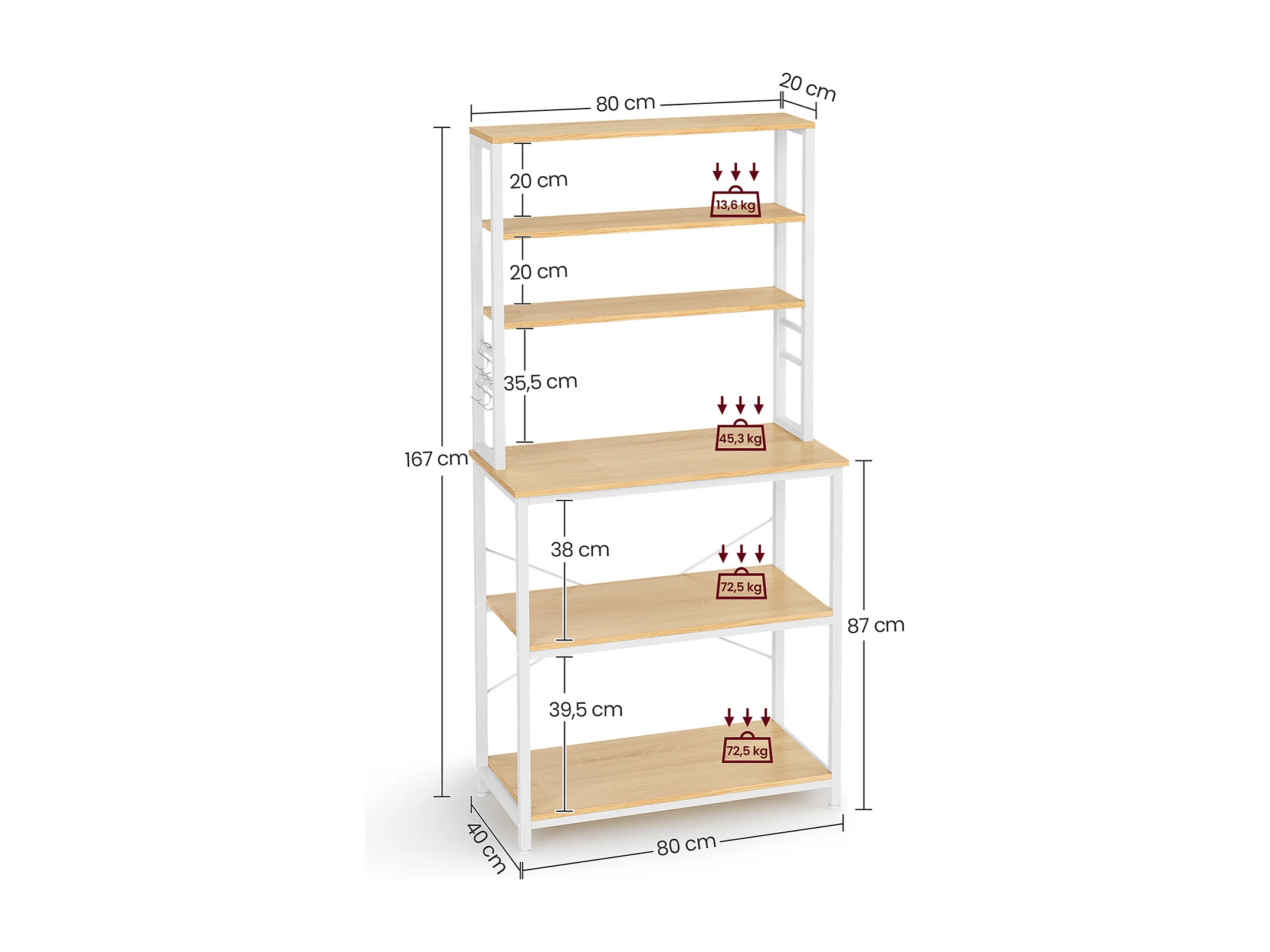 Prateleira de cozinha 40x80x167 cm carvalho branco