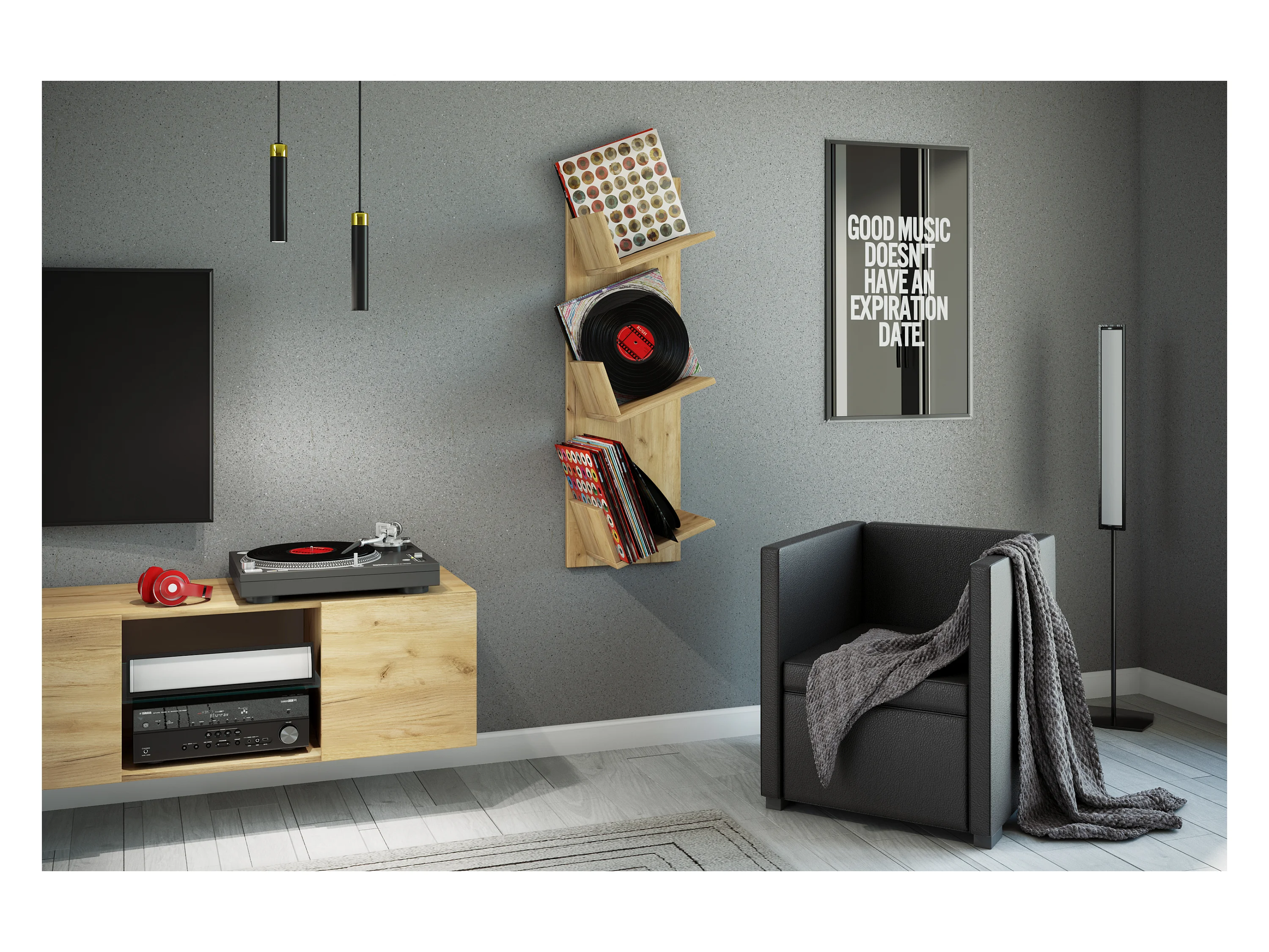 Prateleira de mídia de CD / DVD Lona Carvalho mel A. 106 x L. 33 x P. 26 cm