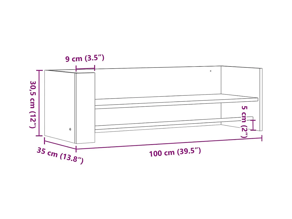 Prateleira parede 100x35x30,5 cm deriv. de madeira cinza sonoma