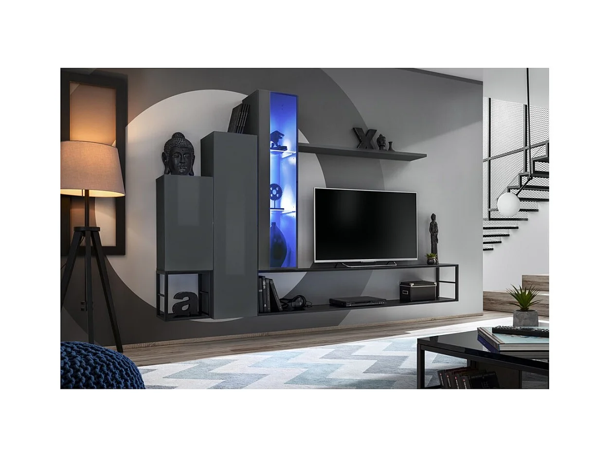 Composição mural com LED. Cores cinza e carvalho escuro. Coleção BERGAME.