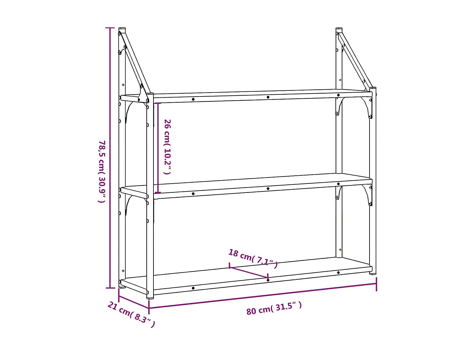 Prateleira de parede 3 níveis 80x21x78,5cm deriv. madeira preto