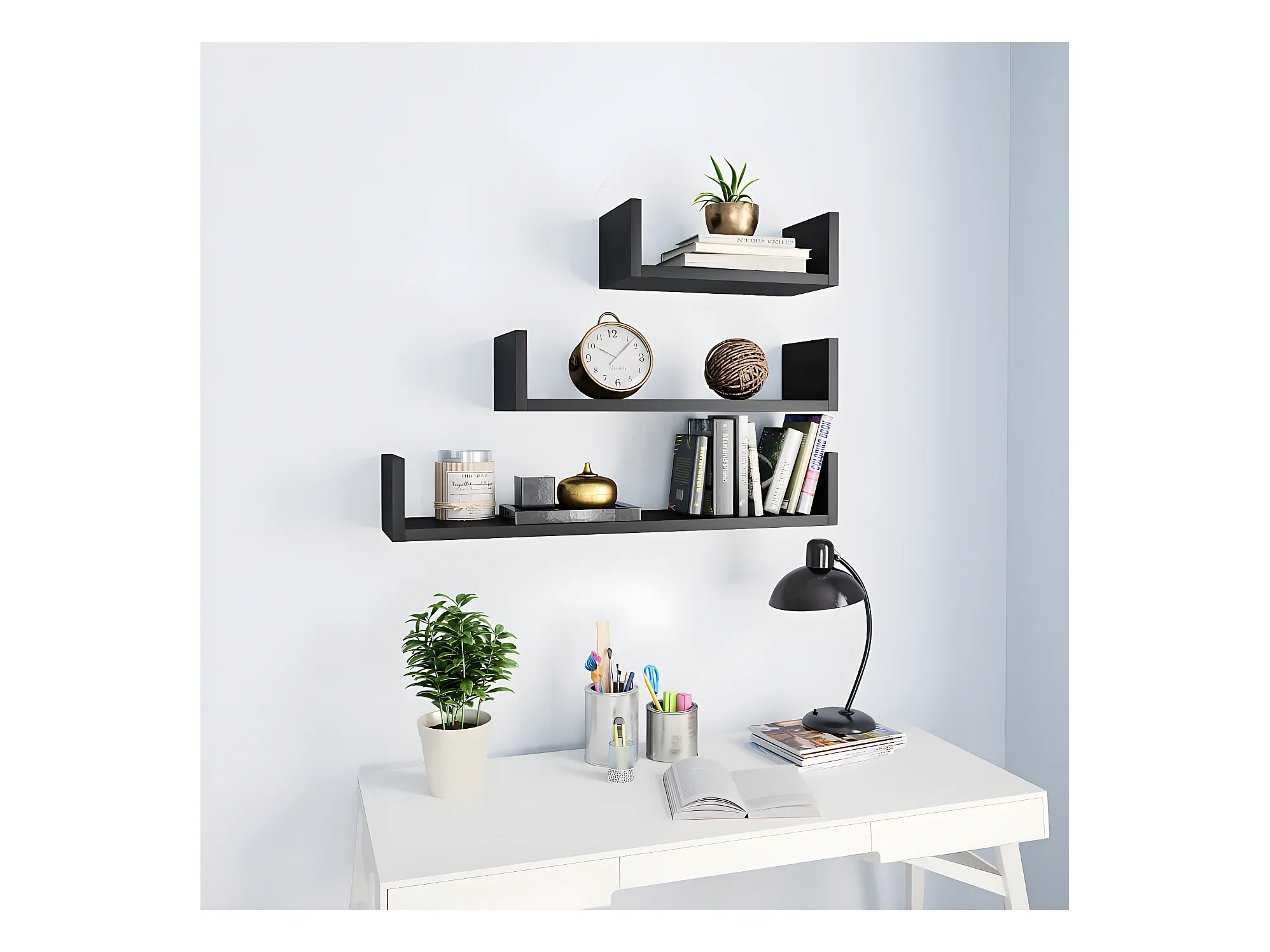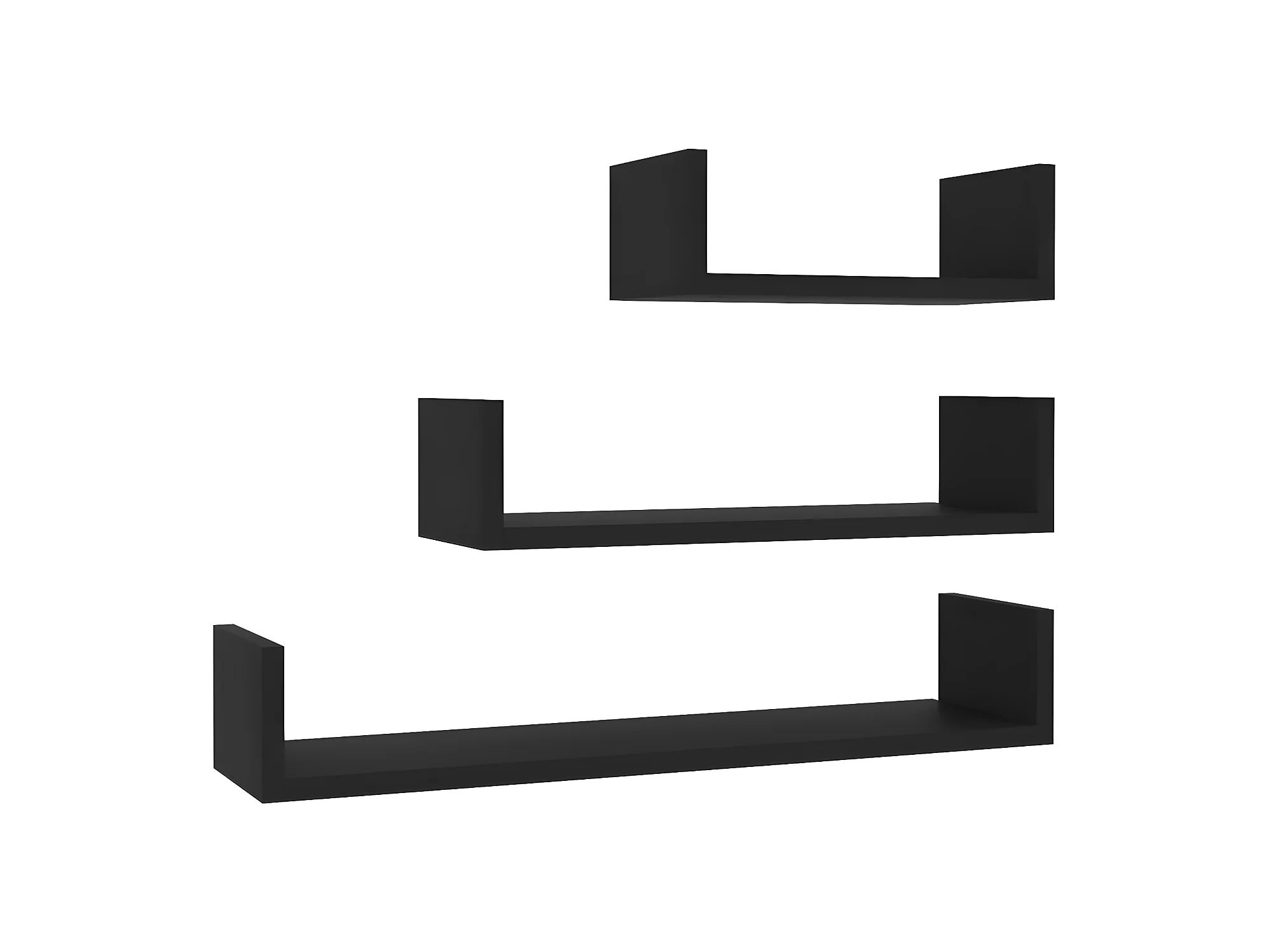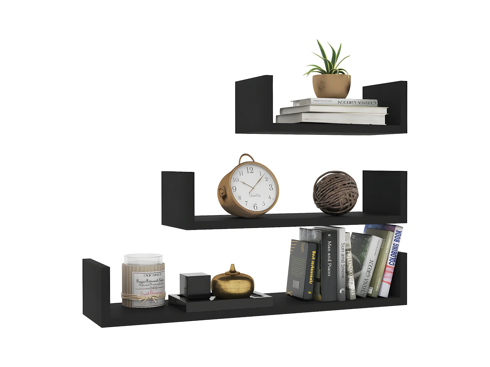 Prateleira de parede 3 pcs derivados de madeira preto PT956014