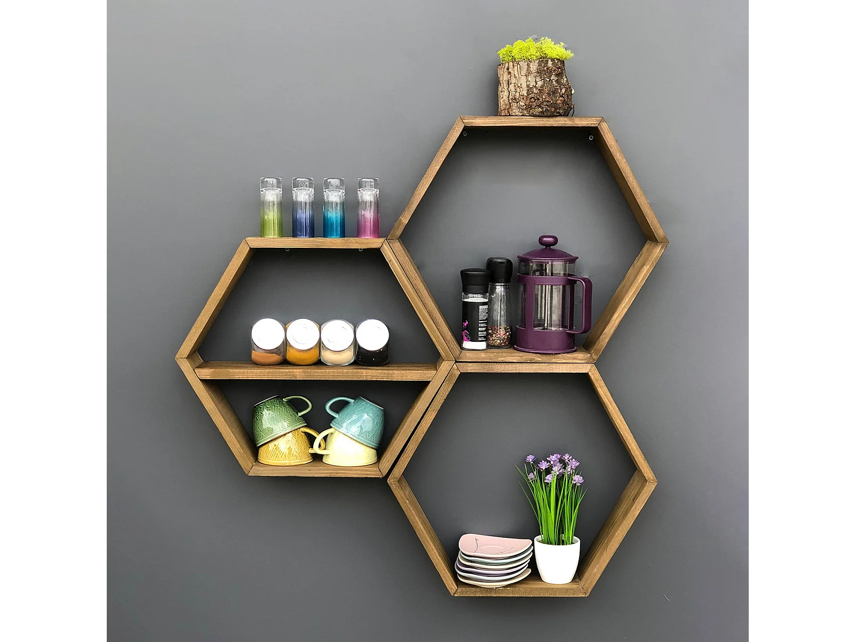 Prateleira de parede – 37 cm x 37 cm x 10 cm – Nogueira – Madeira de abeto