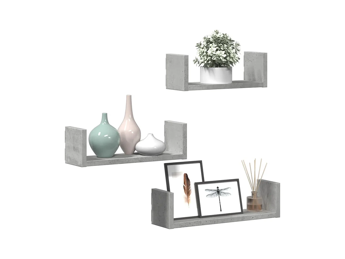 Prateleira de parede 3pcs derivados de madeira cinzento cimento