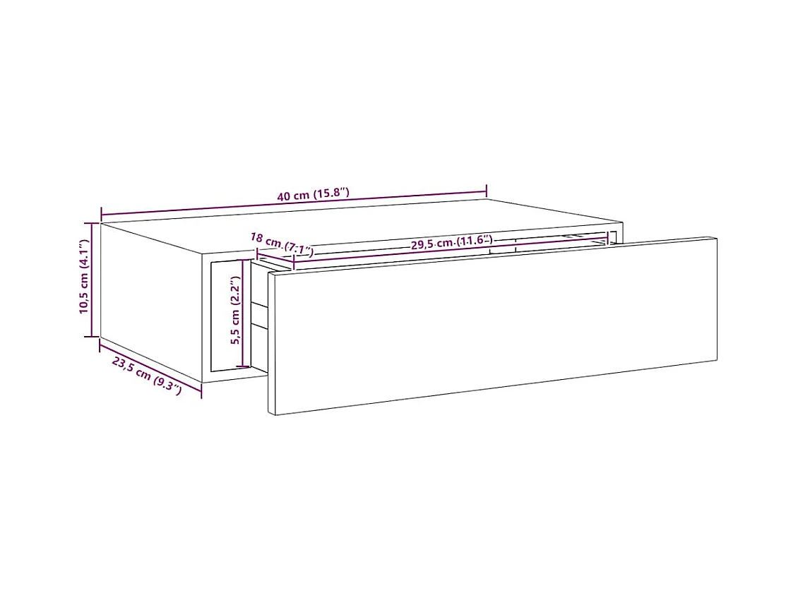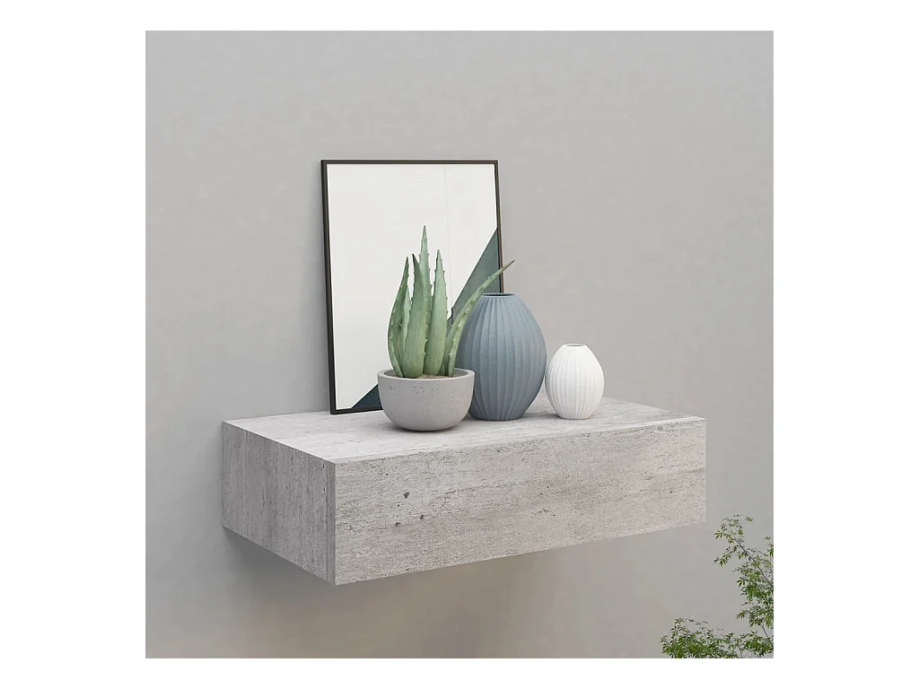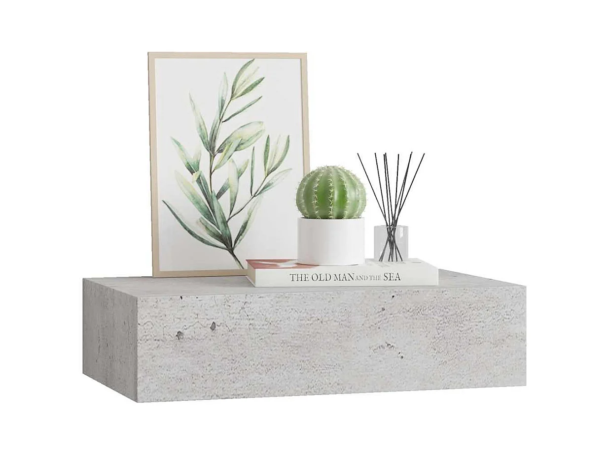 Prateleira de parede com gaveta MDF 40x23,5x10 cm cinza cimento