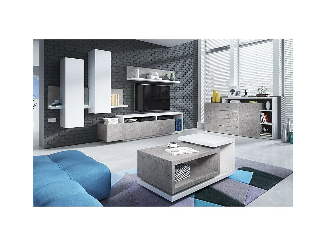 Prateleira de parede design 150cm nas cores branco e cinza efeito concreto. Coleção BERGAMO.