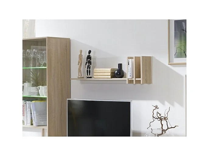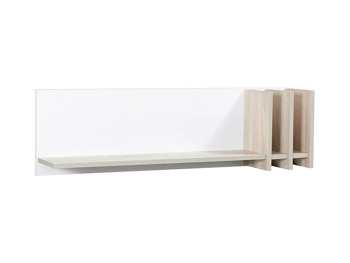 Prateleira de parede na cor branca com efeito de madeira e carvalho. Coleção SANTIAGO.