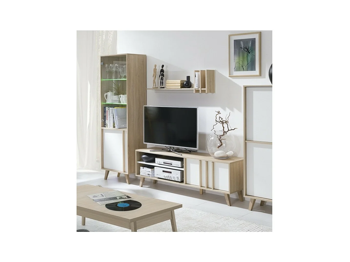 Prateleira de parede escandinava 100 cm MALMO. Ideal para expor seus objetos de decoração. Cor carvalho claro/Branco. Tipo escandinavo.