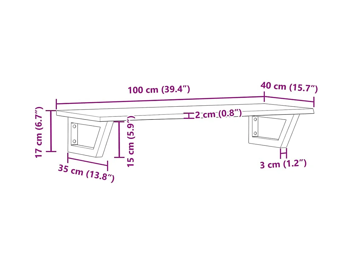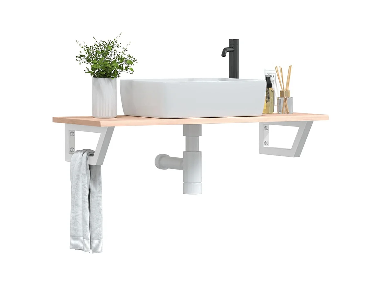 Prateleira de parede p/ lavatório aço/madeira carvalho maciça