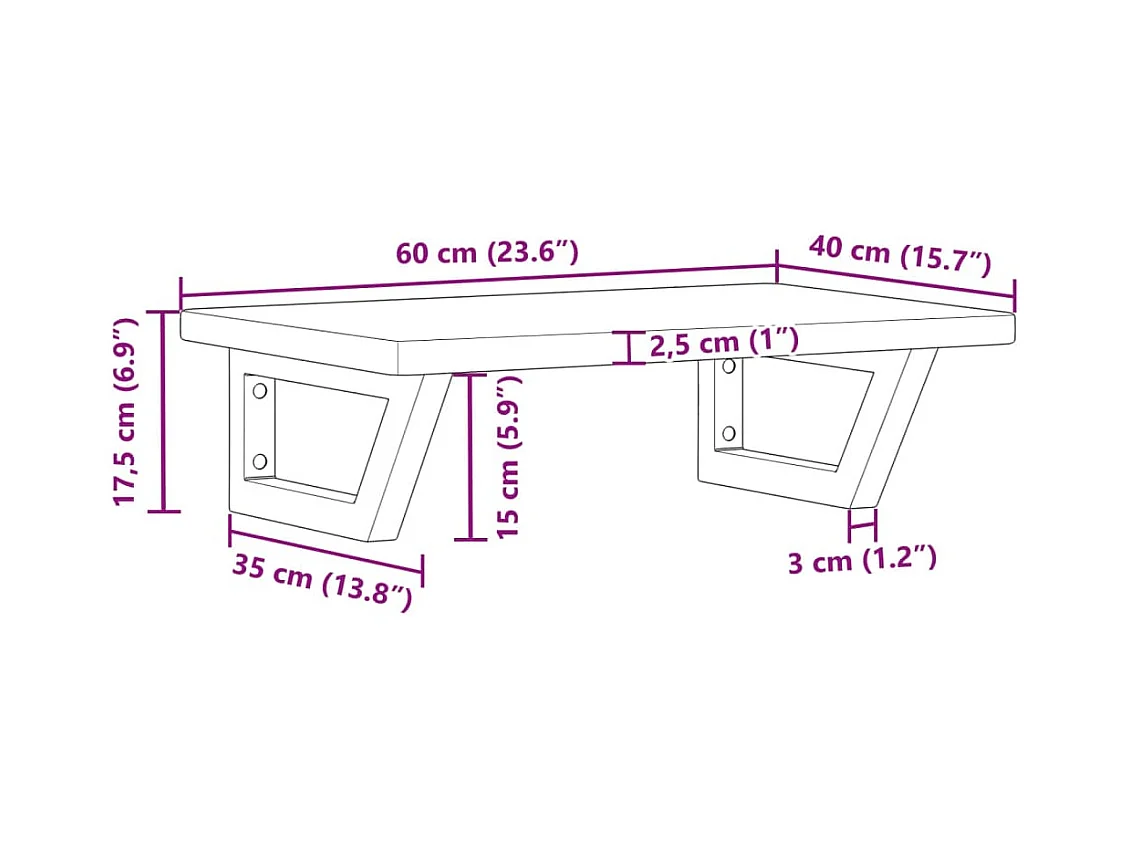 Prateleira de parede p/ lavatório aço/madeira carvalho maciça