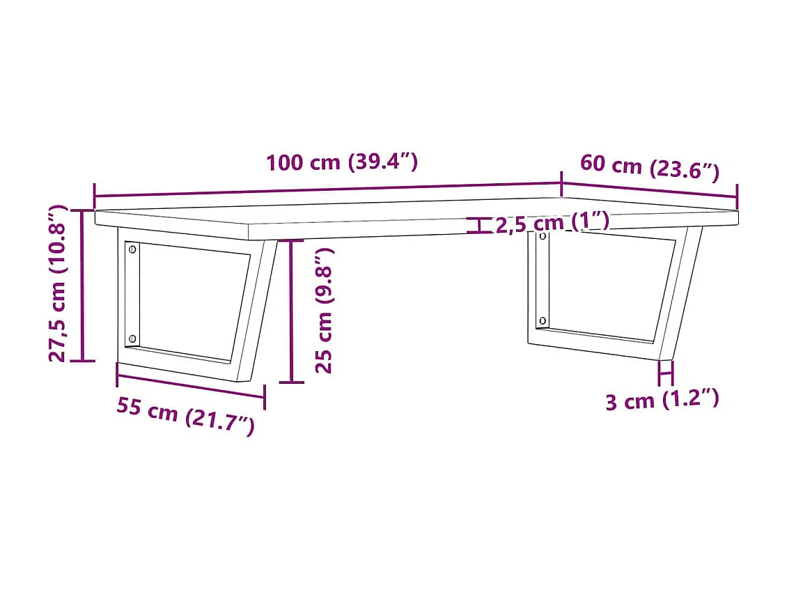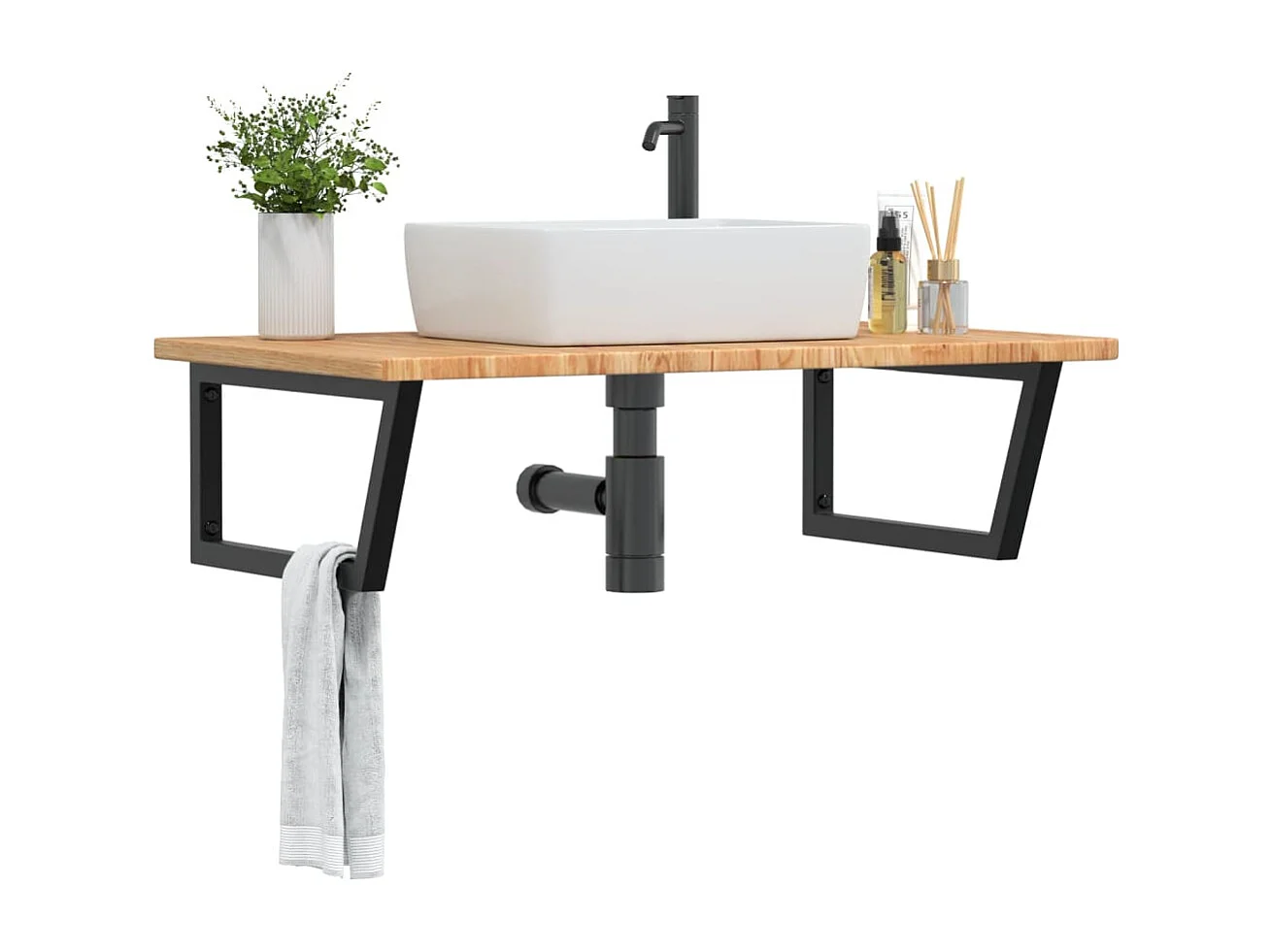 Prateleira de parede p/ lavatório aço/madeira carvalho maciça